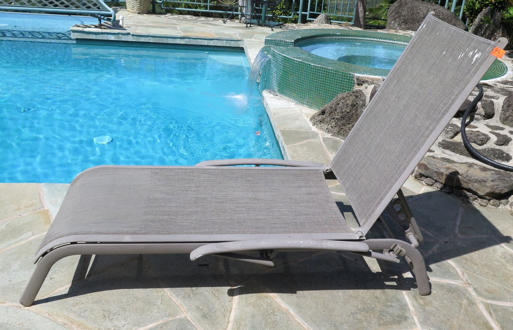 Qty 2 Adjustable Chaise Lounges w/ Woven Seat & Back