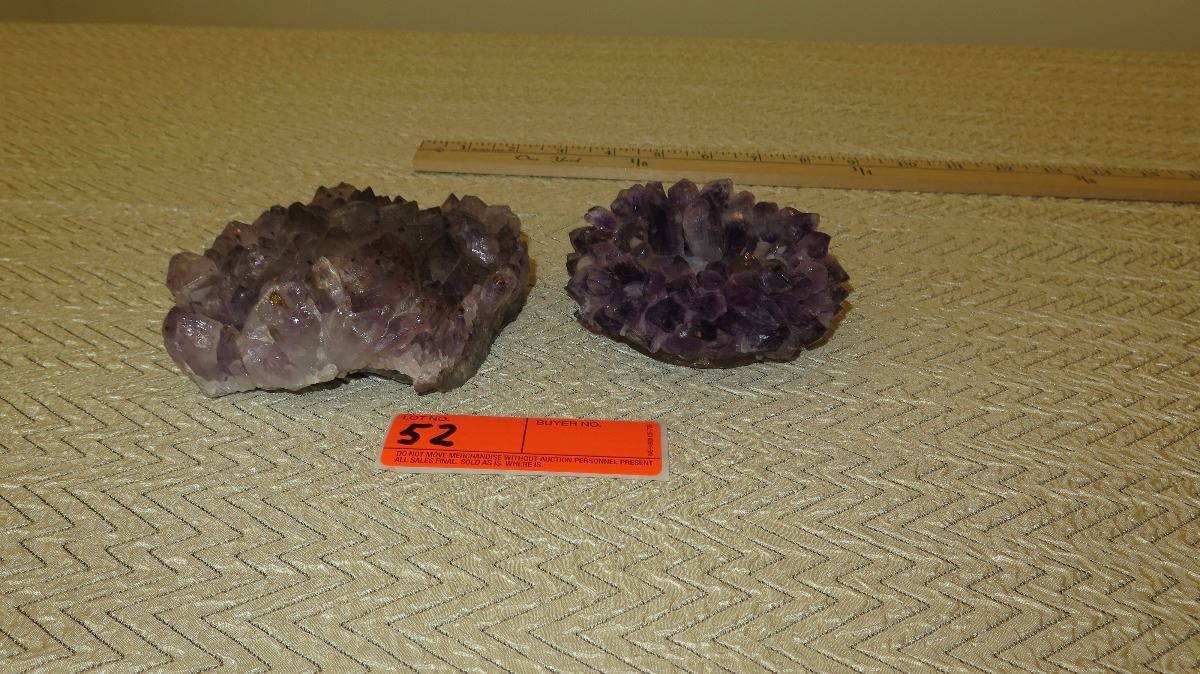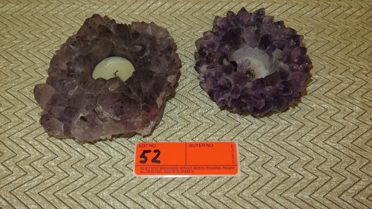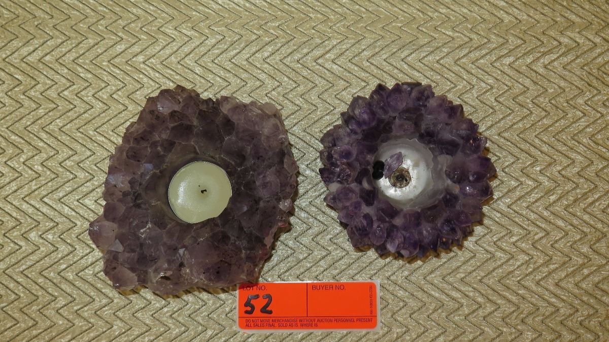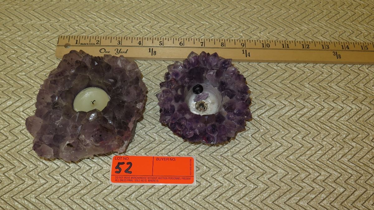 Qty 2 Amethyst Geode Rock / Gem Cluster Candle Holders