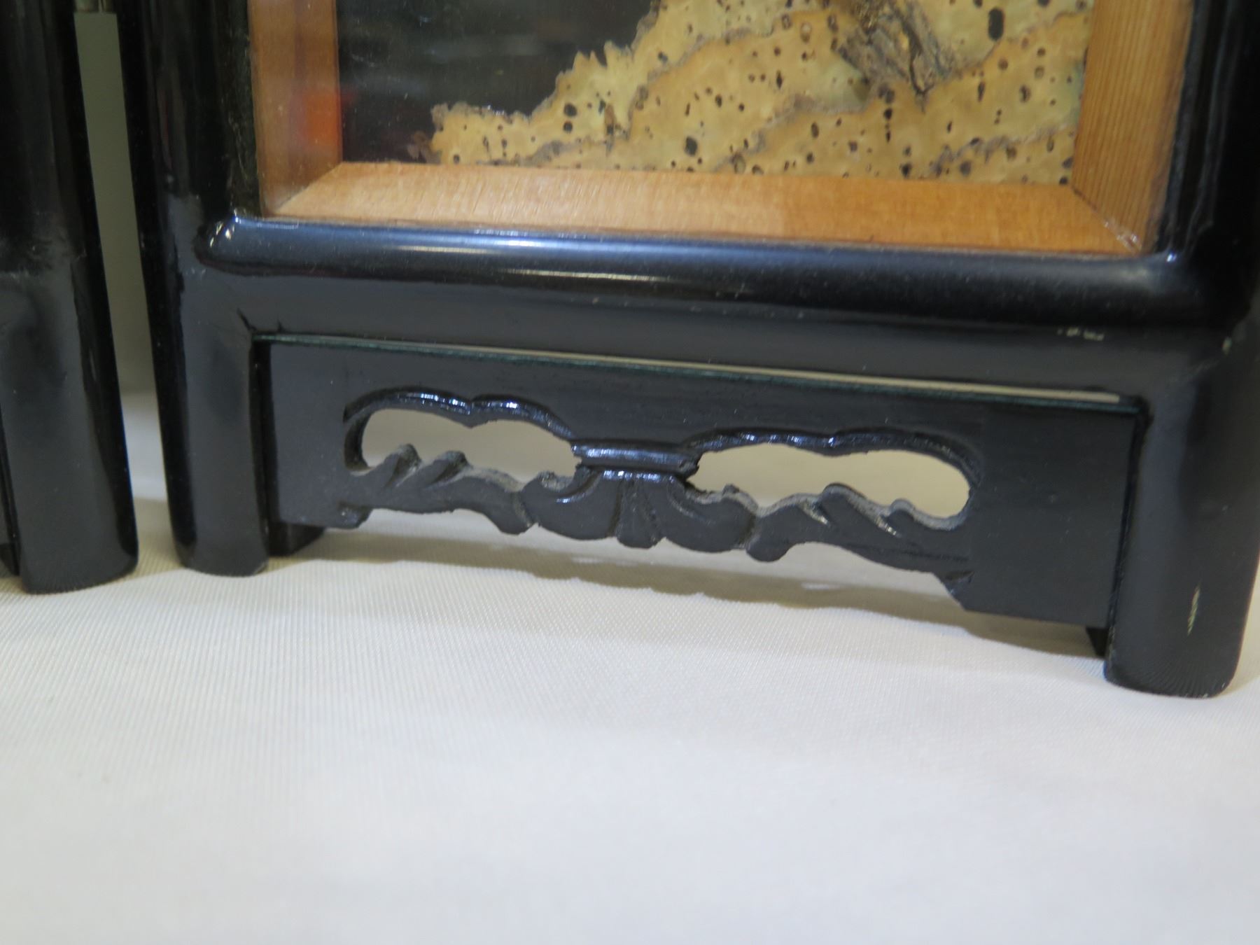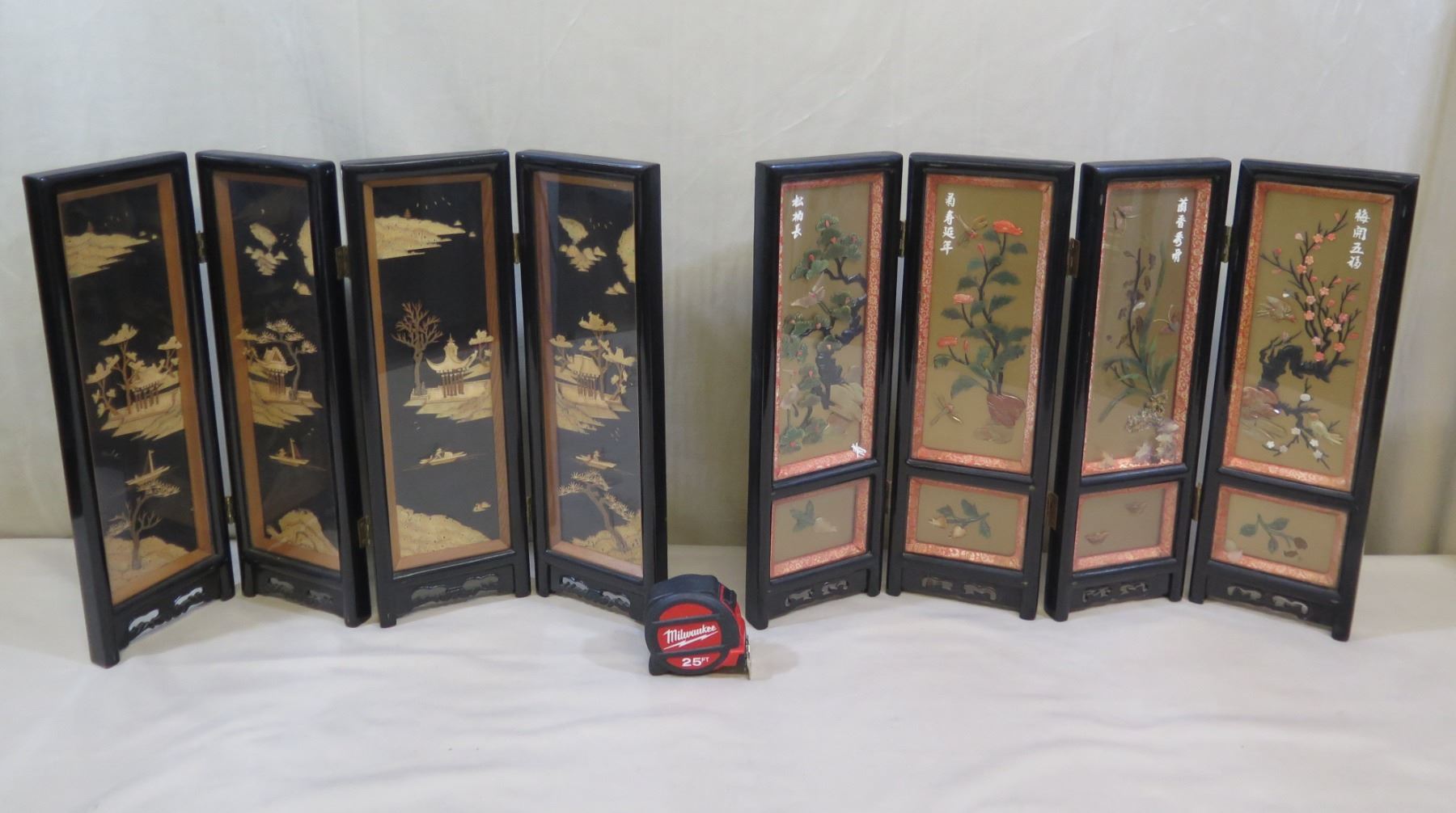 Qty 2 Asian 4-Panel Shadow-Box Screens w/ Painted Backs 24"x18"