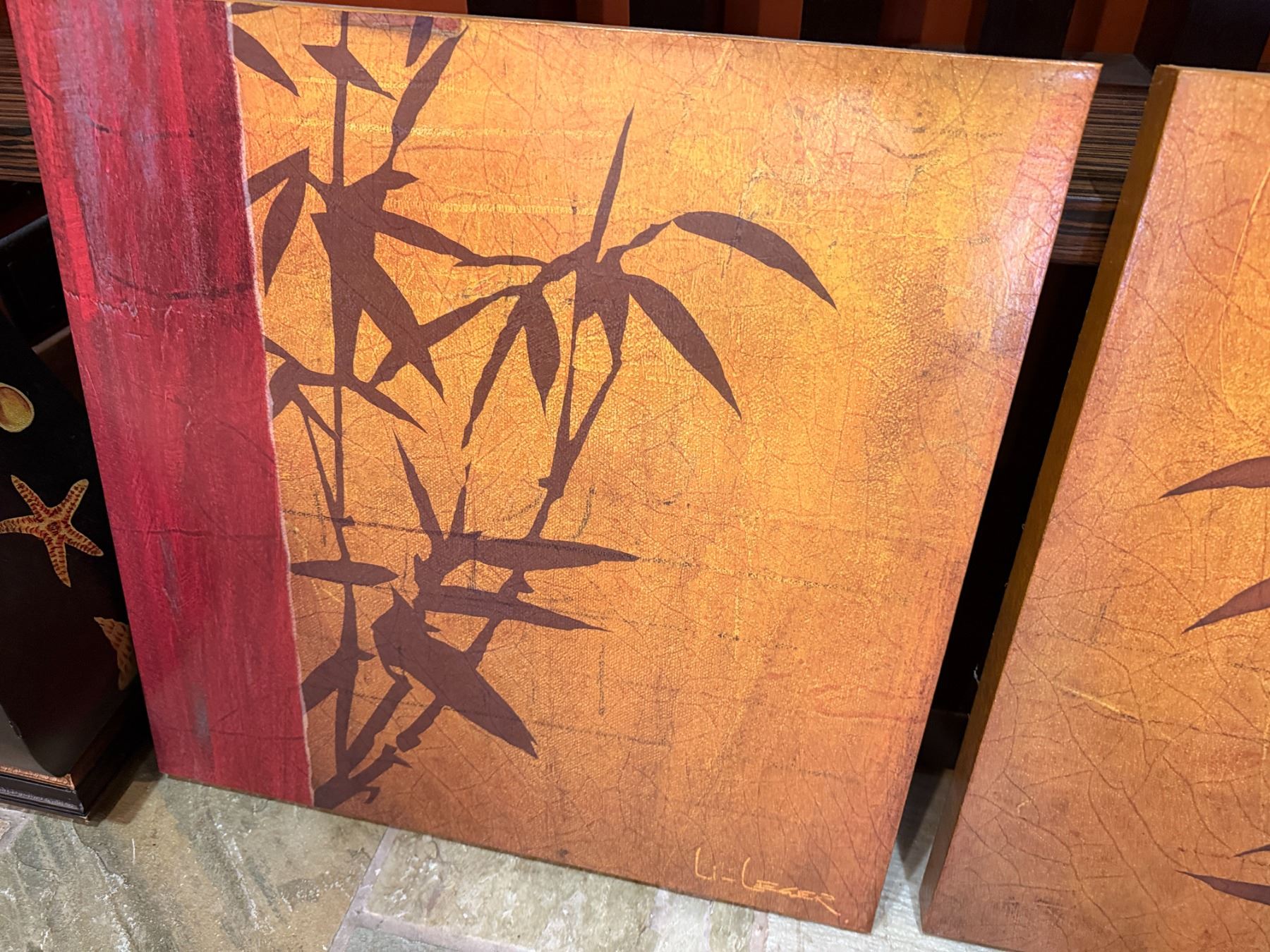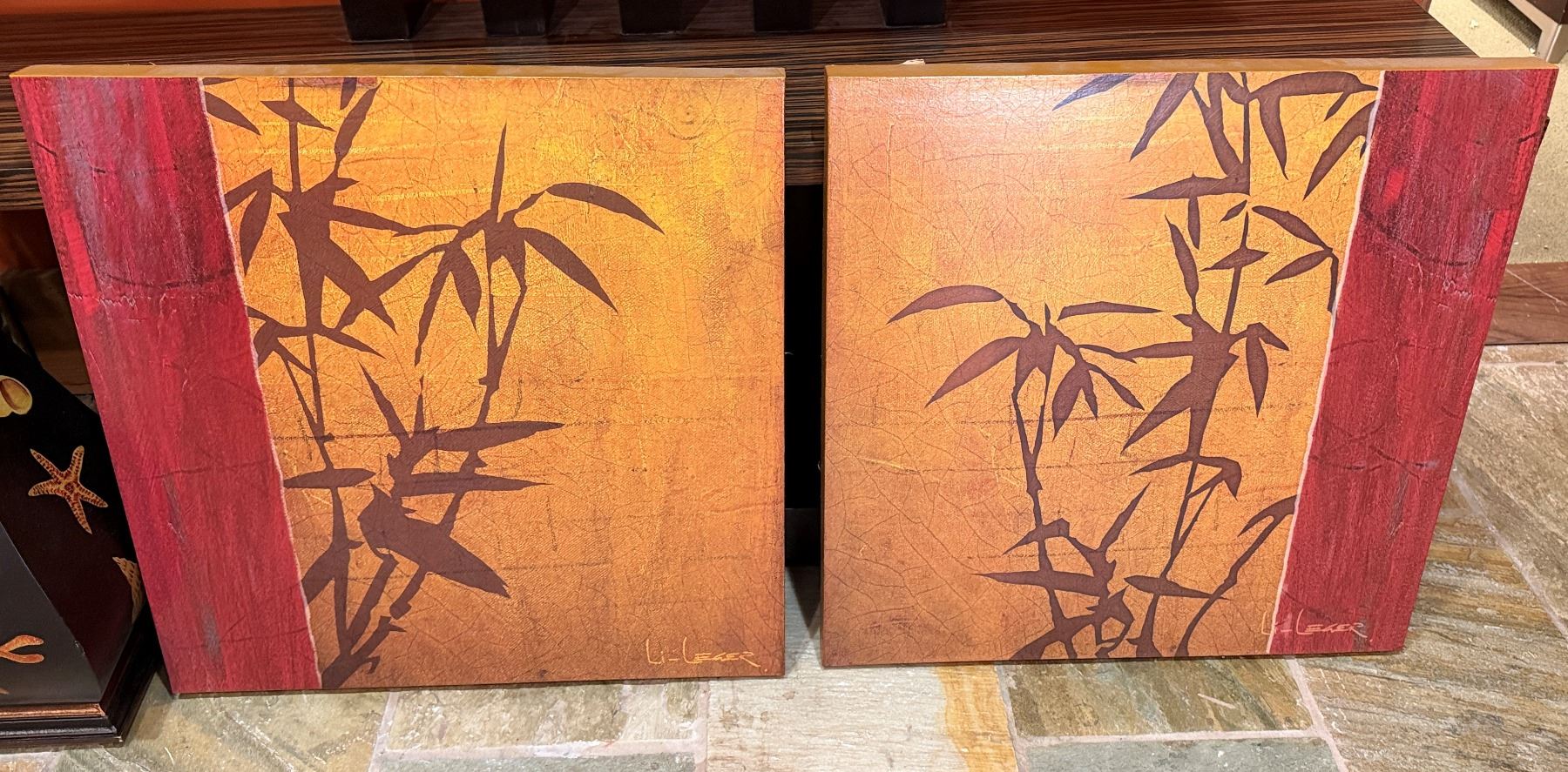 Qty 2 Bamboo Artwork by Li-Leger 24" x 25"