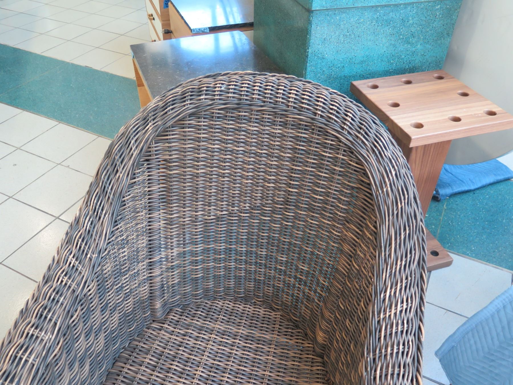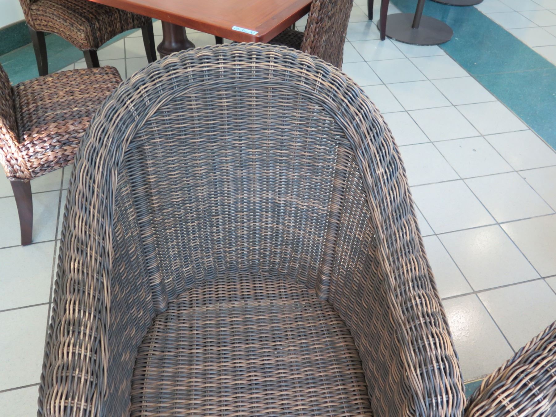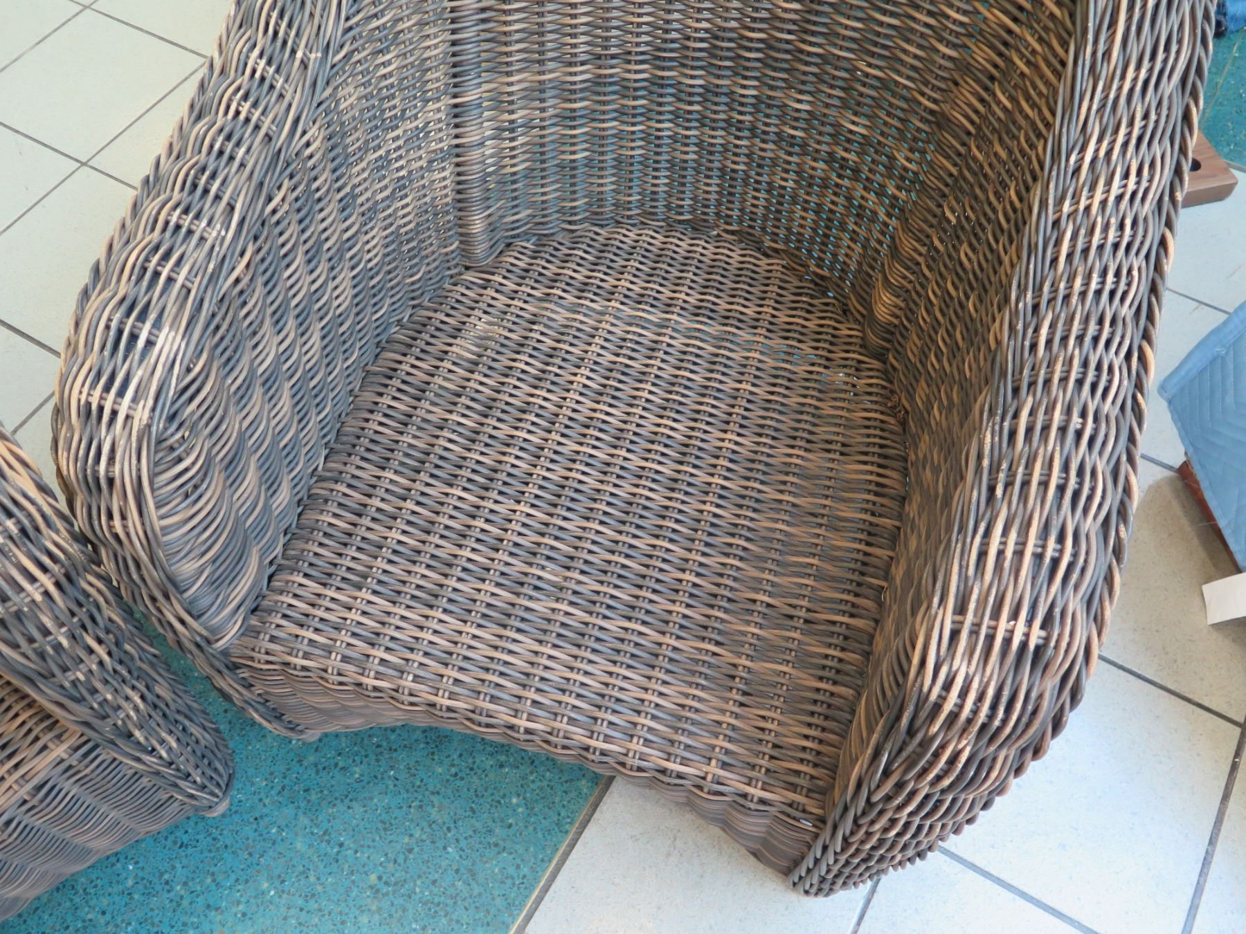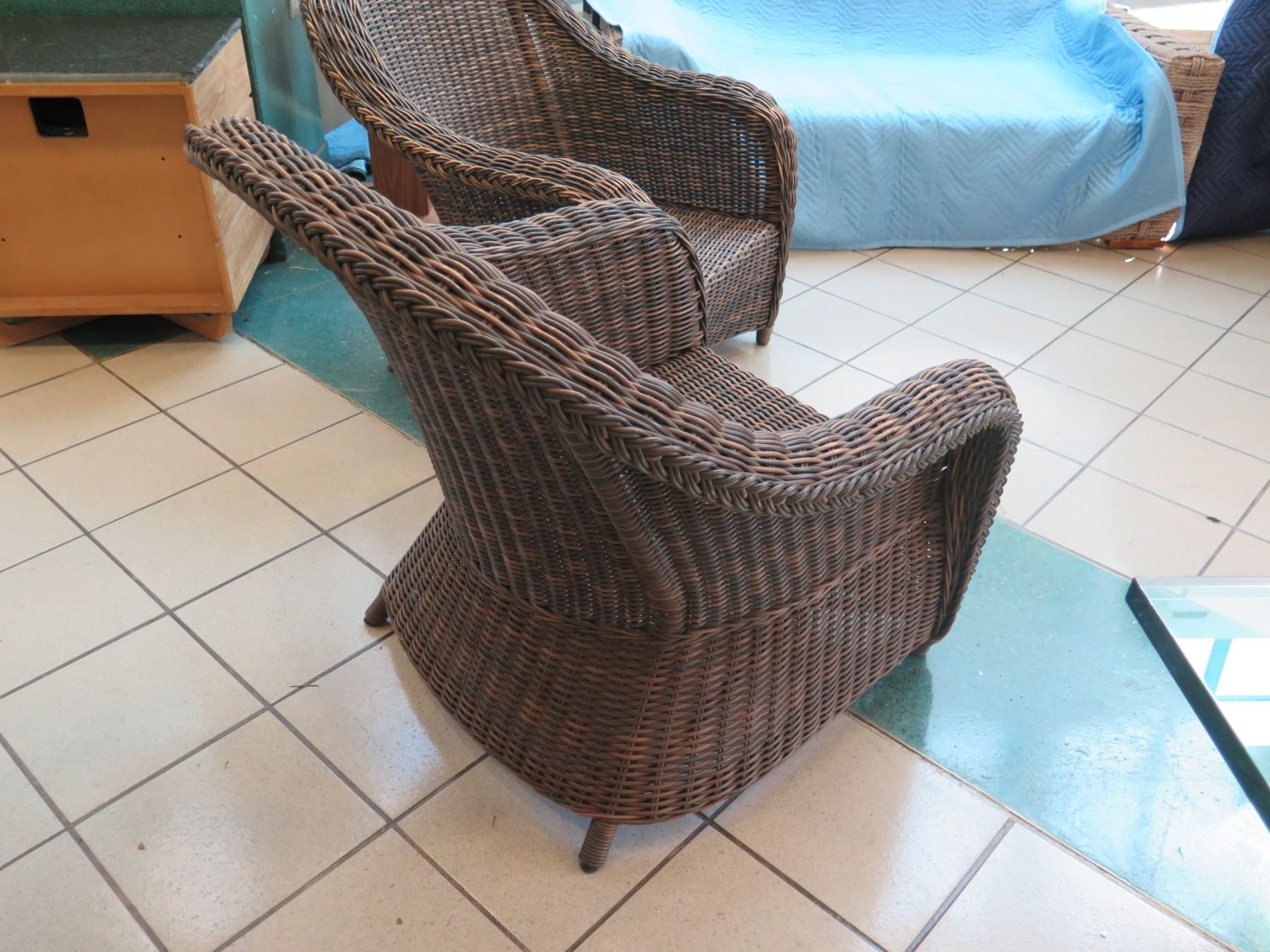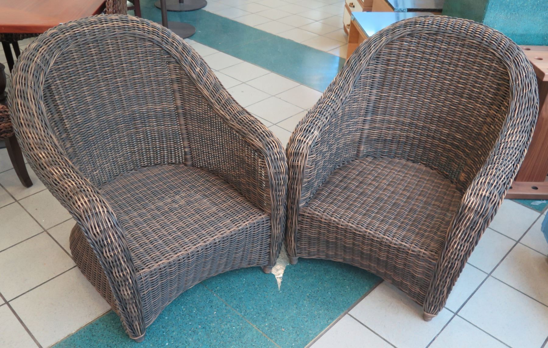 Qty 2 Barrel-Back Outlook Woven Rattan Chairs 32" x 25" x 35" Back Ht.
