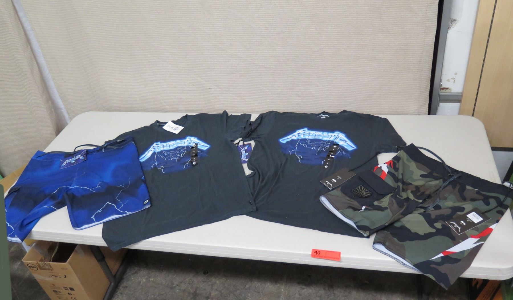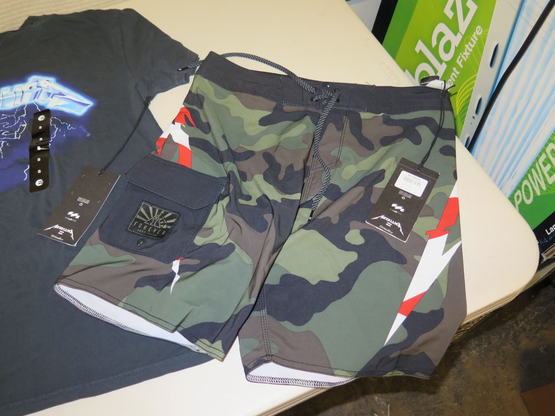 Qty 2 Billabong Metallica T-Shirts, Metallica & Camouflage Shorts New w/ Tags