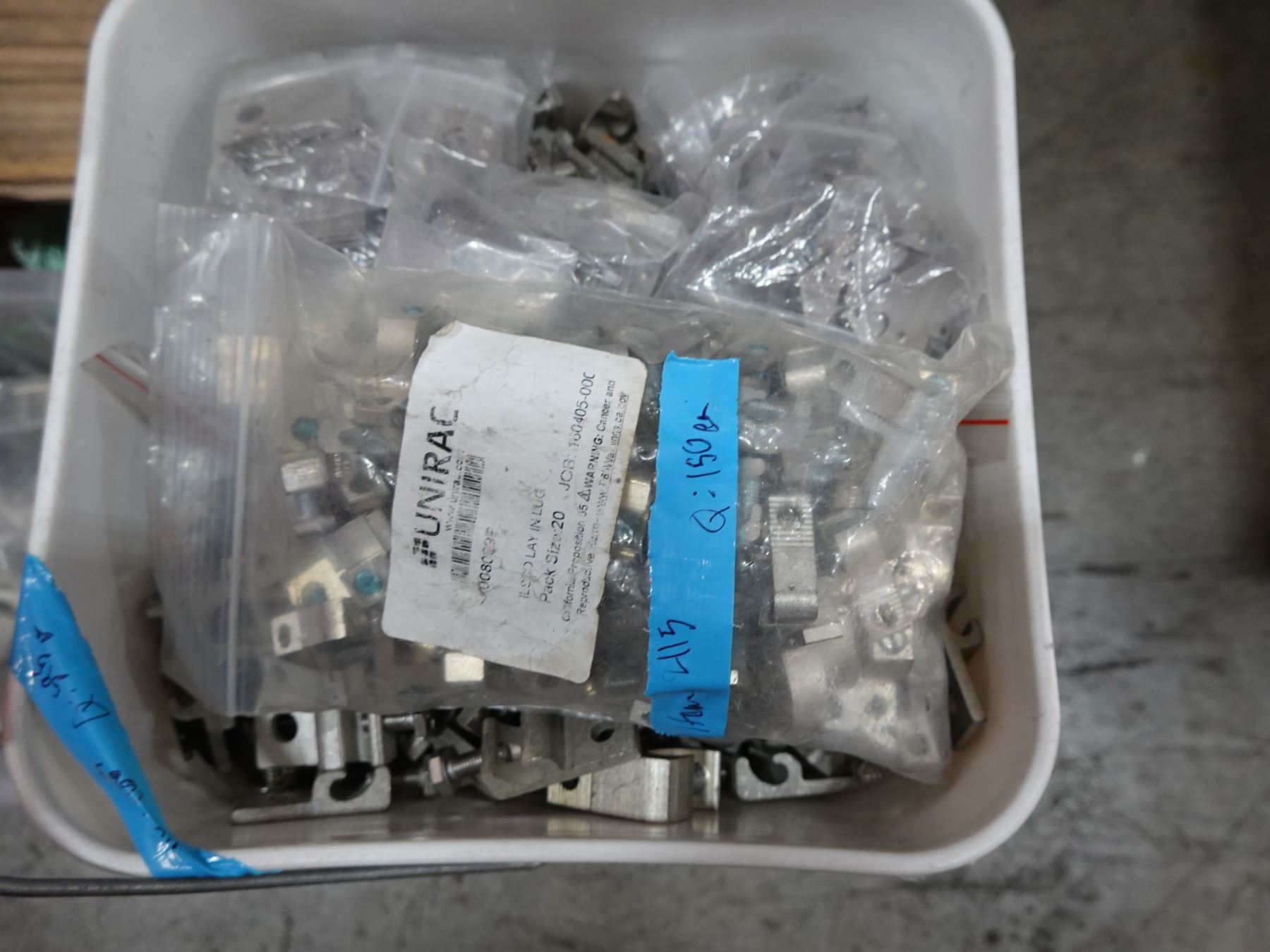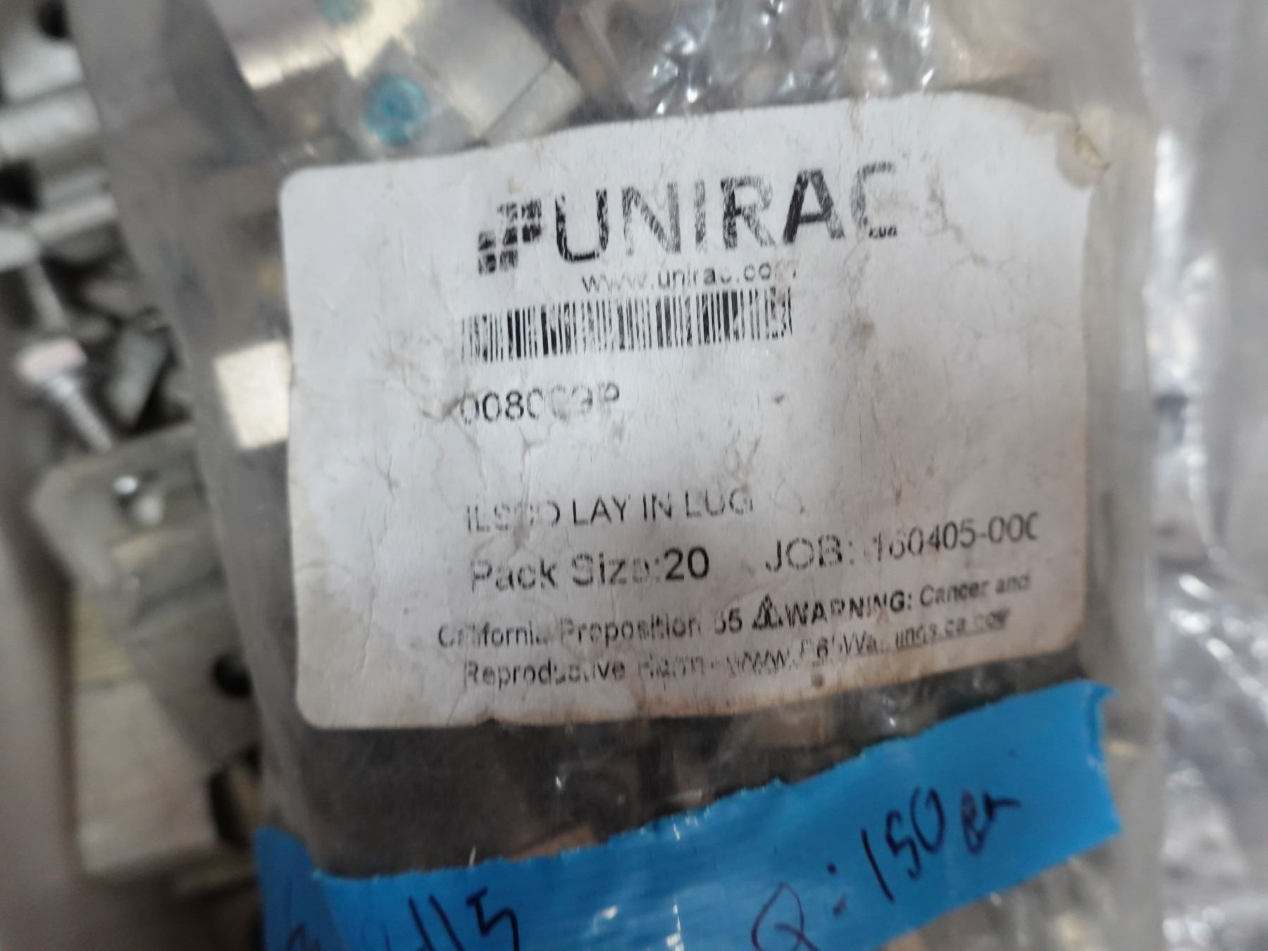 Qty 2 Bins Unirac Lay-In Lugs, Beam Clamps, etc