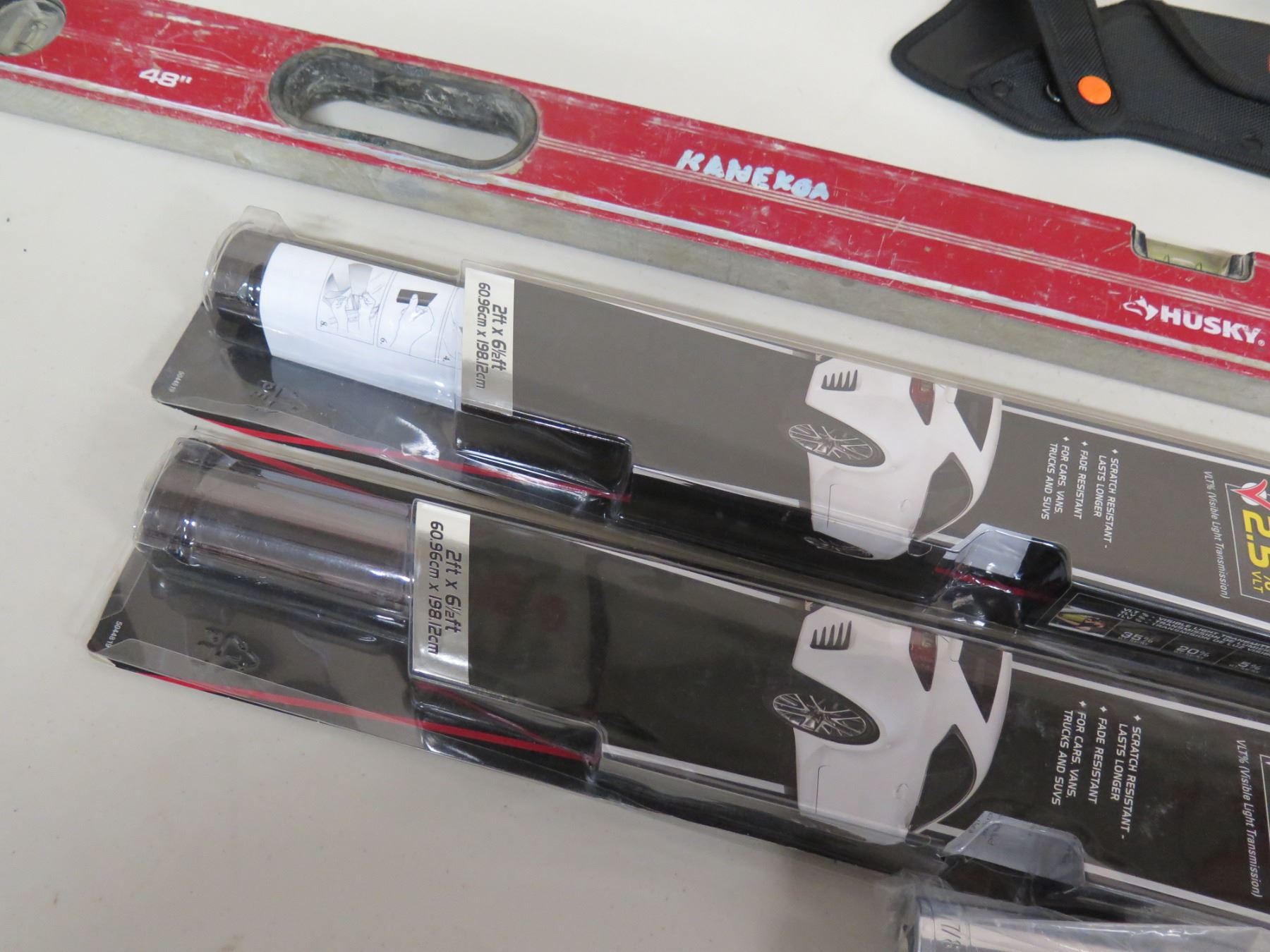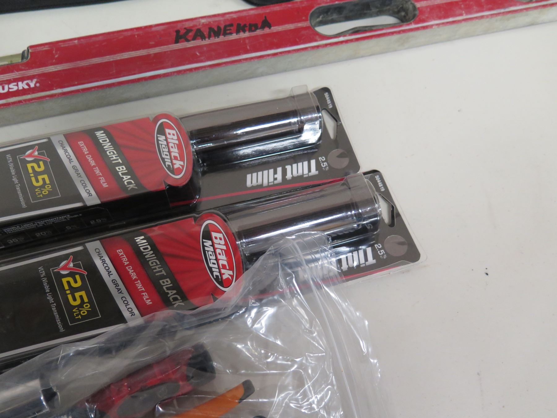 Qty 2 Black Magic Tint Film, Husky Level, Hand Tools, etc