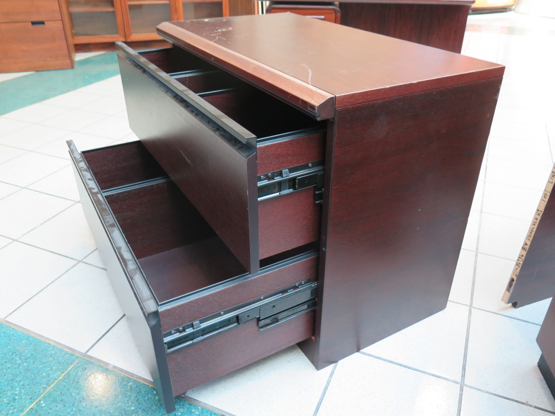 Qty 2 Black Metal 2 Drawer Lateral Legal File Cabinet w/ Wooden Top 37"x19"x28"