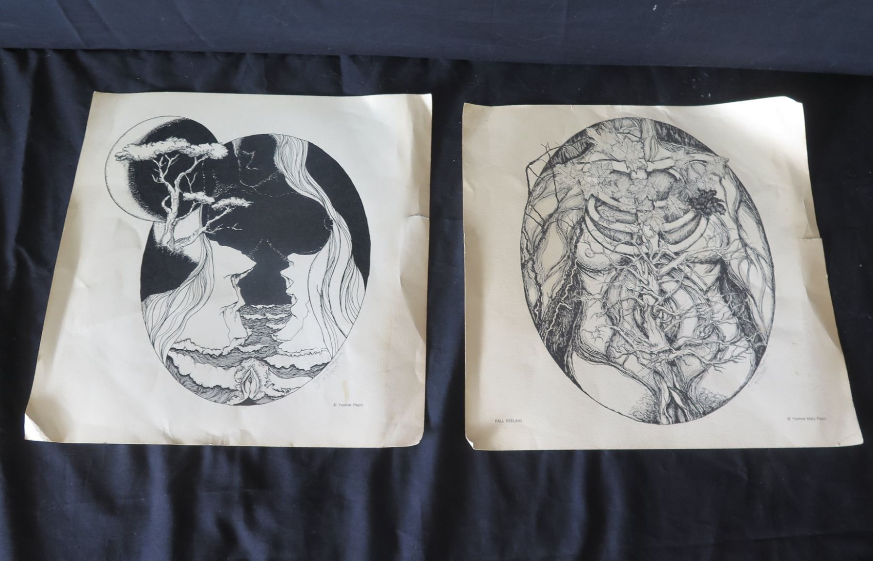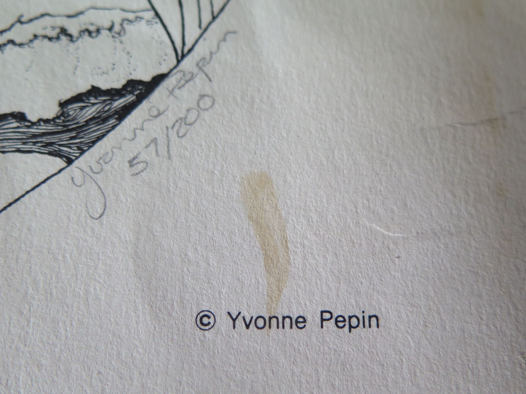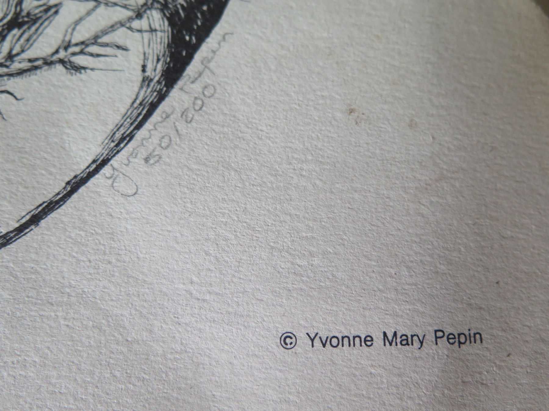 Qty 2 Black & White Artwork by Yvonne Pepin: Ocean 57/200 & Fall Feeling 50/200