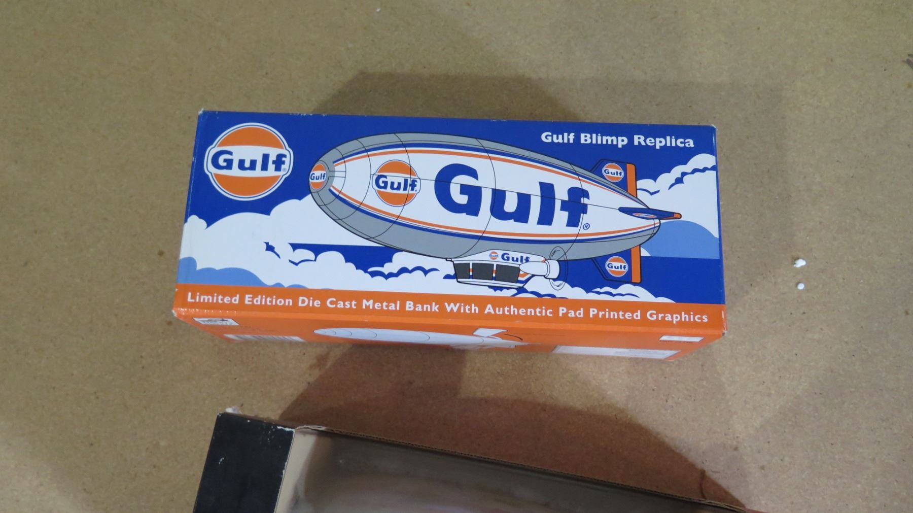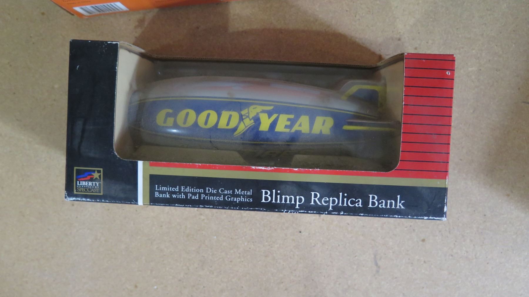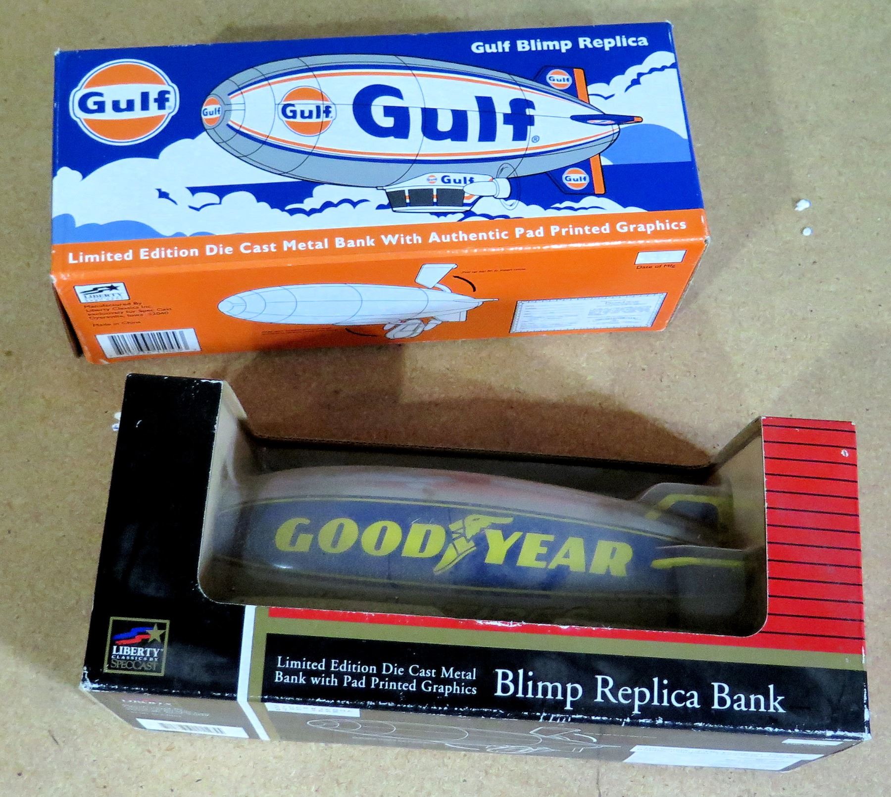 Qty 2 Blimp Die Cast Replica Banks in Box - Gulf & Goodyear, Ltd Edition
