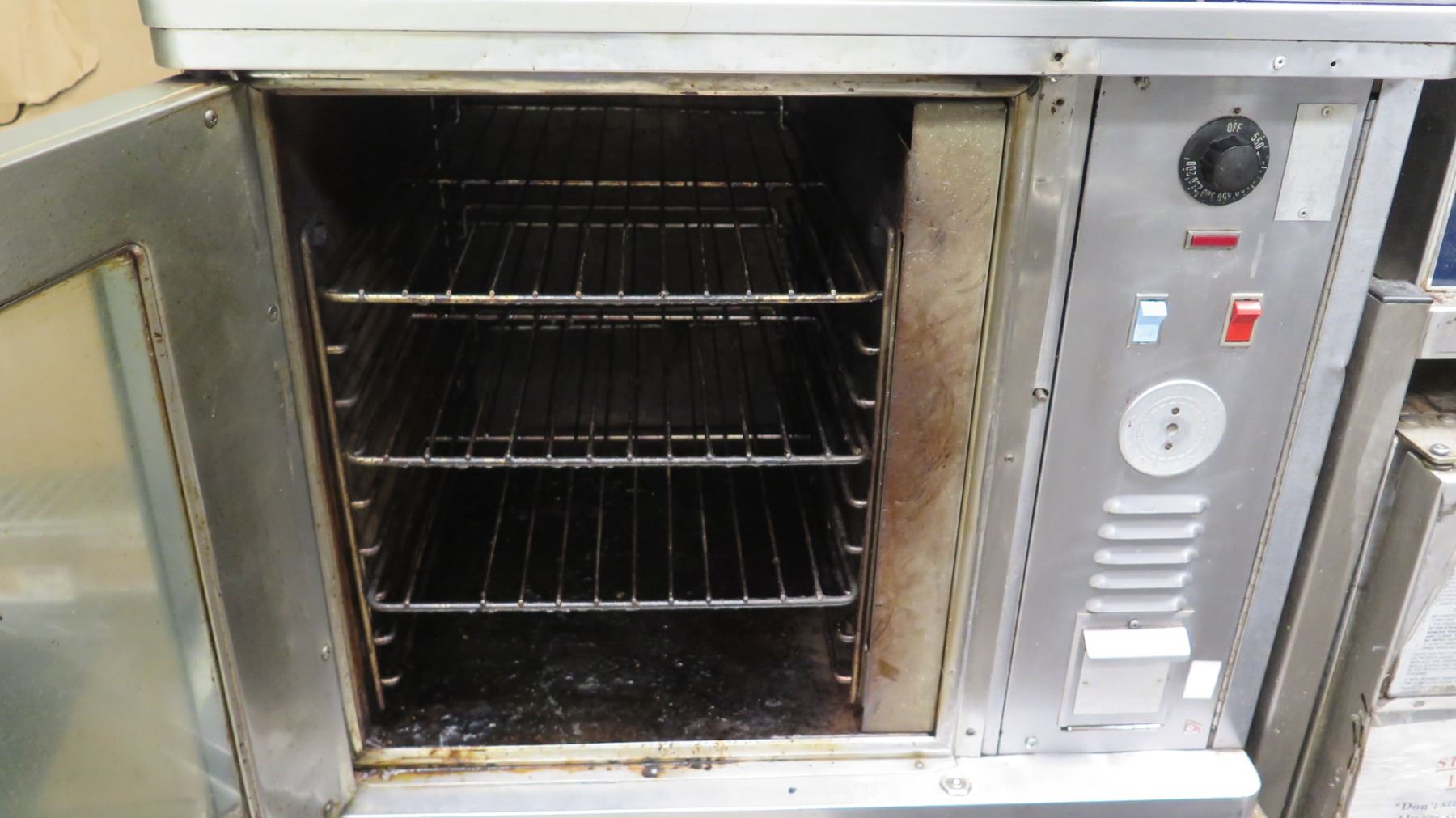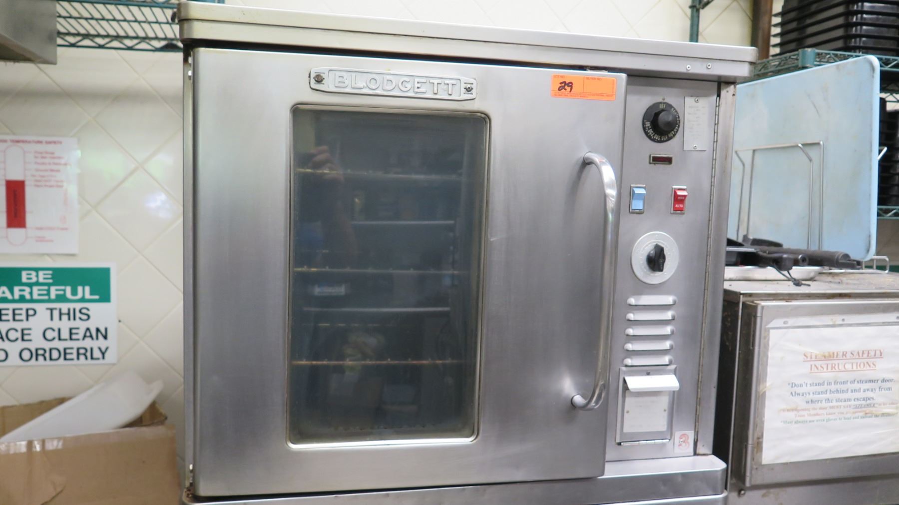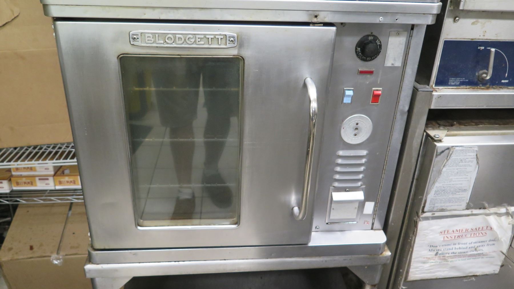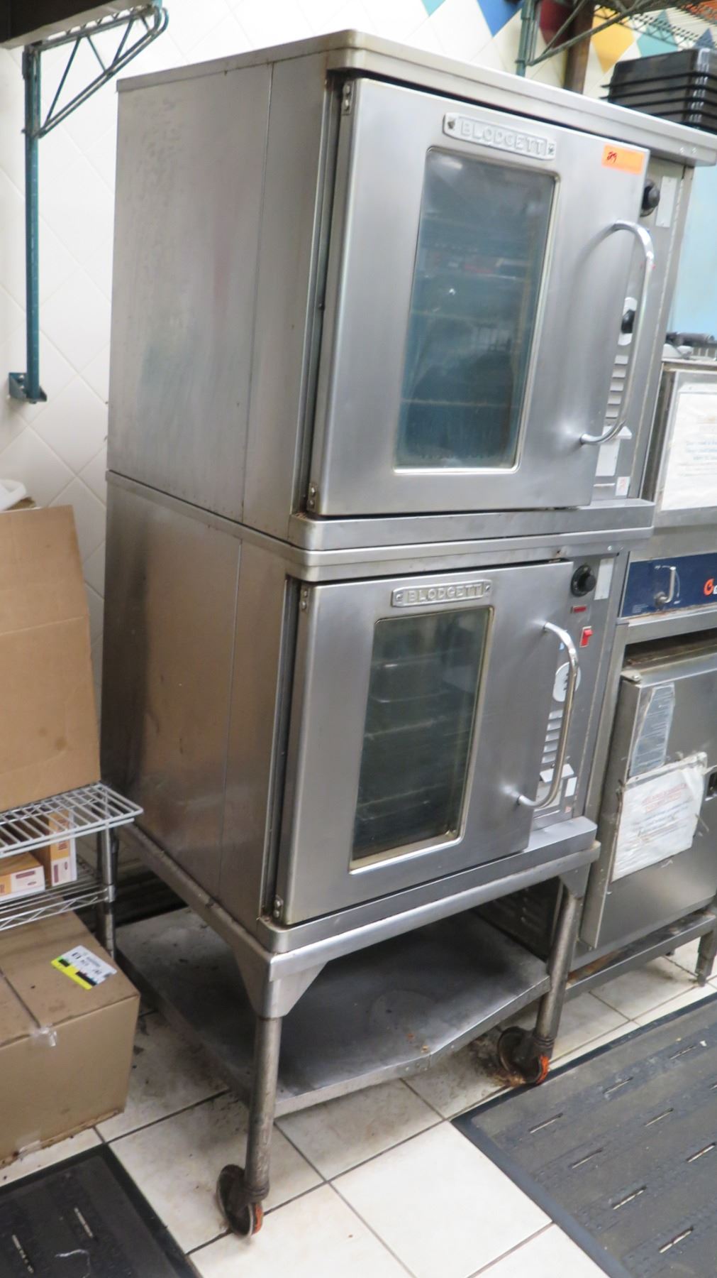 Qty 2 Blodgett Stacked Commercial Convection Ovens. FOOD PRODUCTS AND MERCHANDISE IN THE PICTURES ARE NOT INCLUDED.