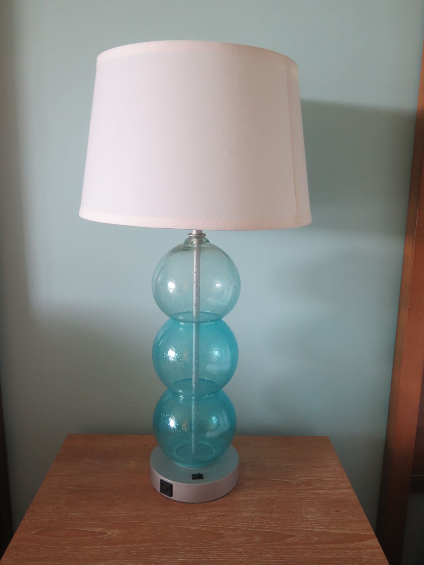 Qty 2 Blue Glass Bubble Lamps & White Shade 12"D x 30"H