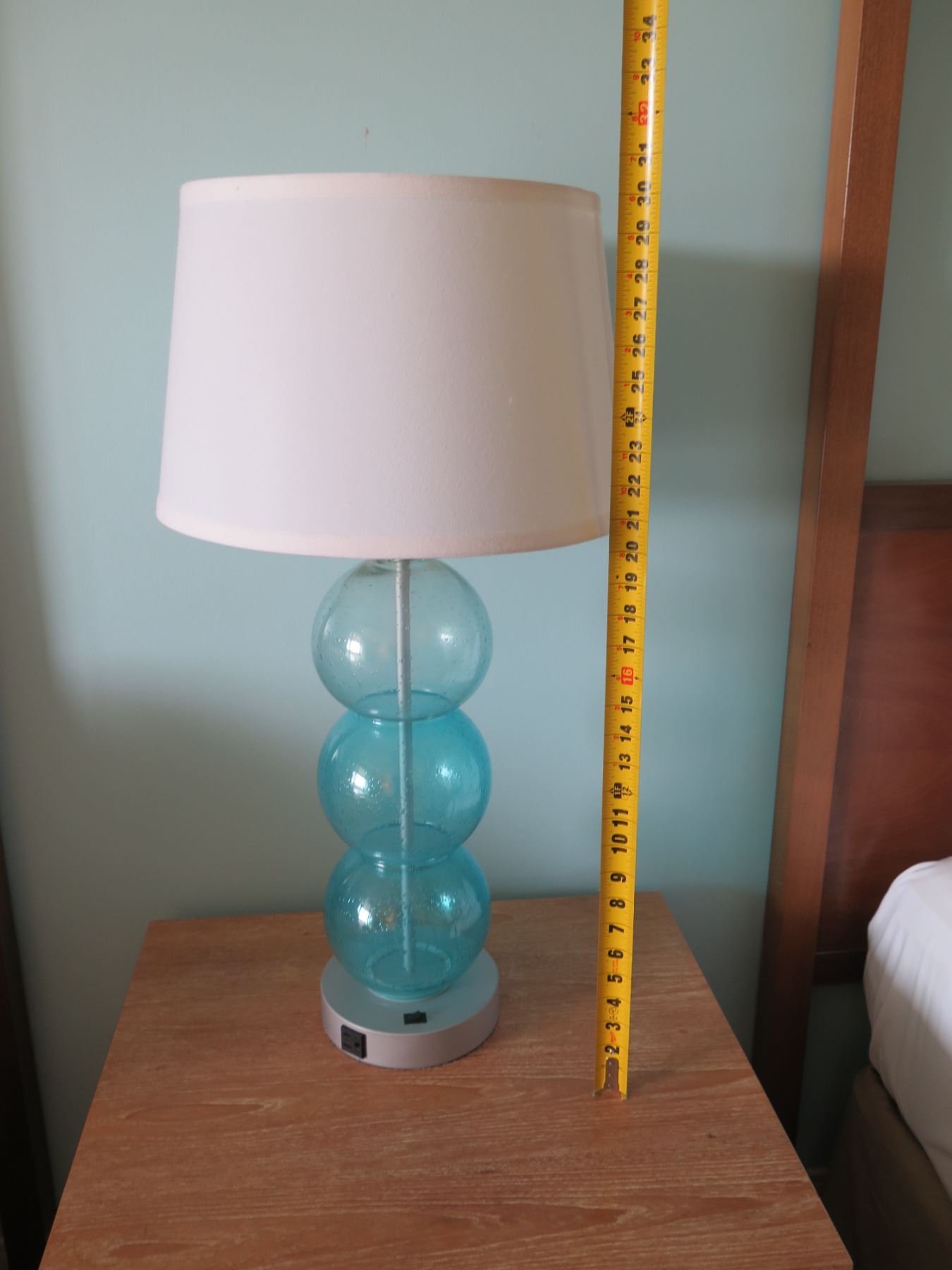 Qty 2 Blue Glass Bubble Lamps & White Shade 12 D x 30 H