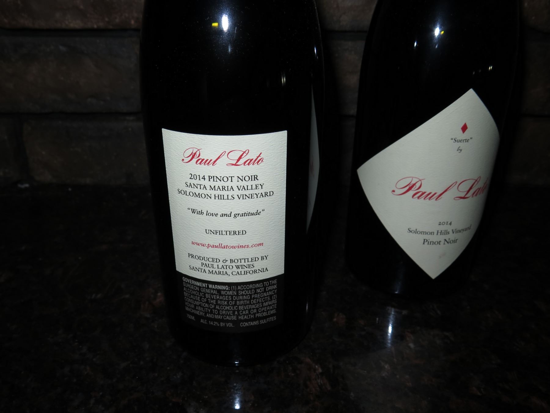 Qty 2 Bottles Paul Lato 2014 Suerte Pinot Noir Wine