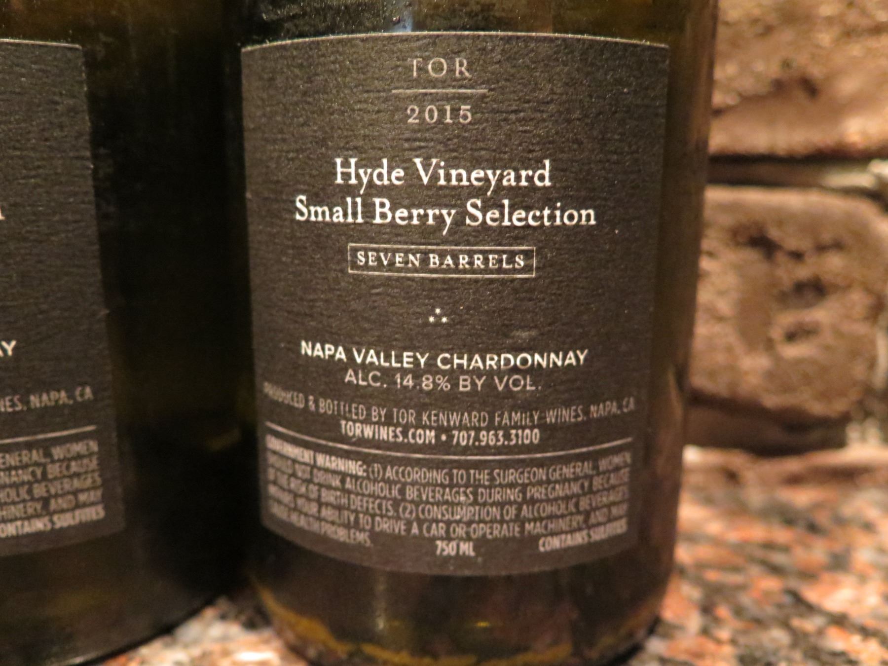 Qty 2 Bottles TOR 2015 Hyde Vineyard Chardonnay Wine