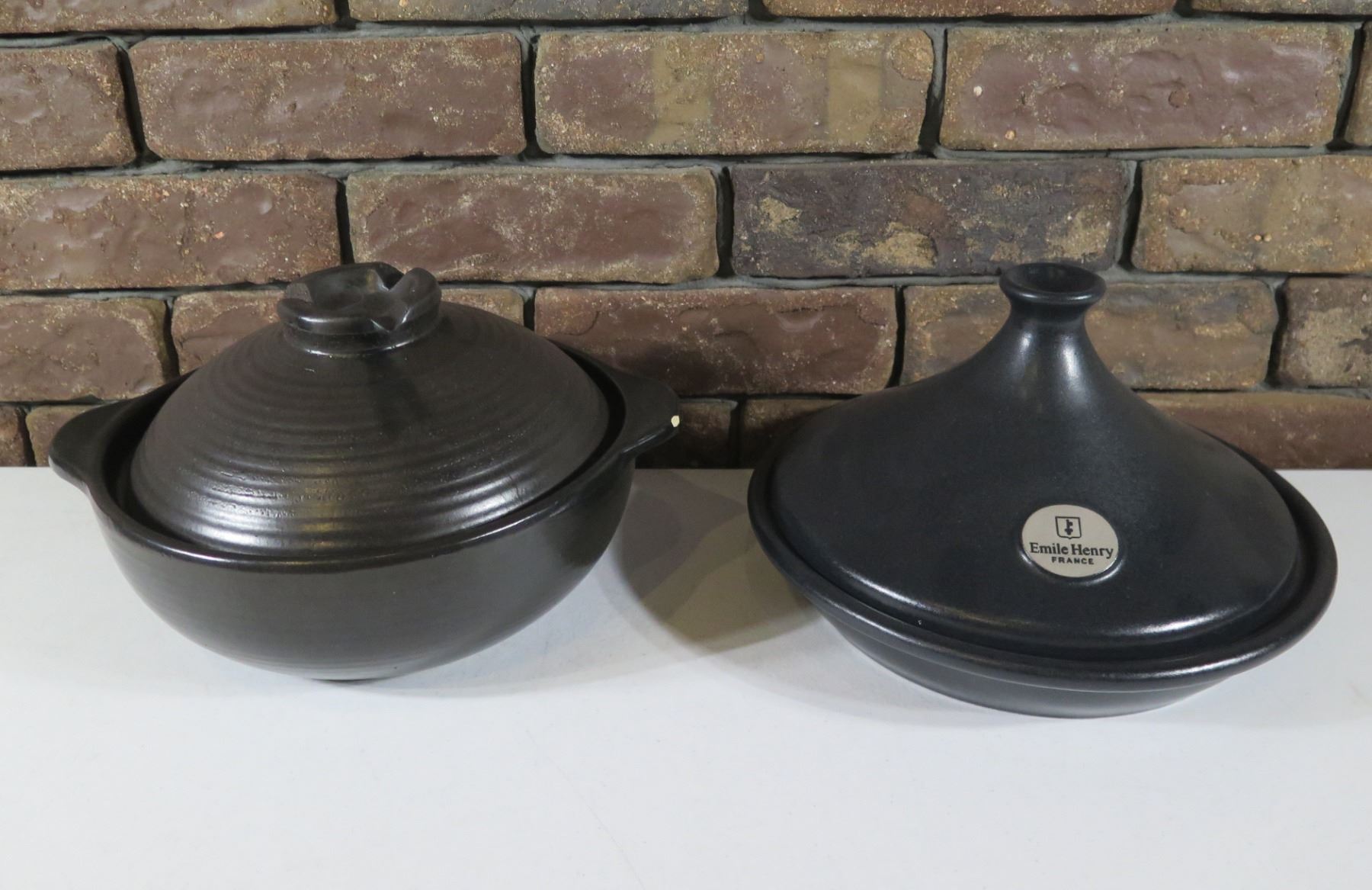 Qty 2 Bowls w/ Lids: Emile Henry France & Other