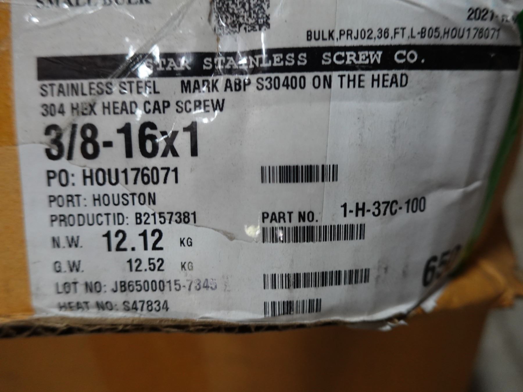Qty 2 Boxes 1-H-37C-100 Stainless Steel Hex Cap Screws