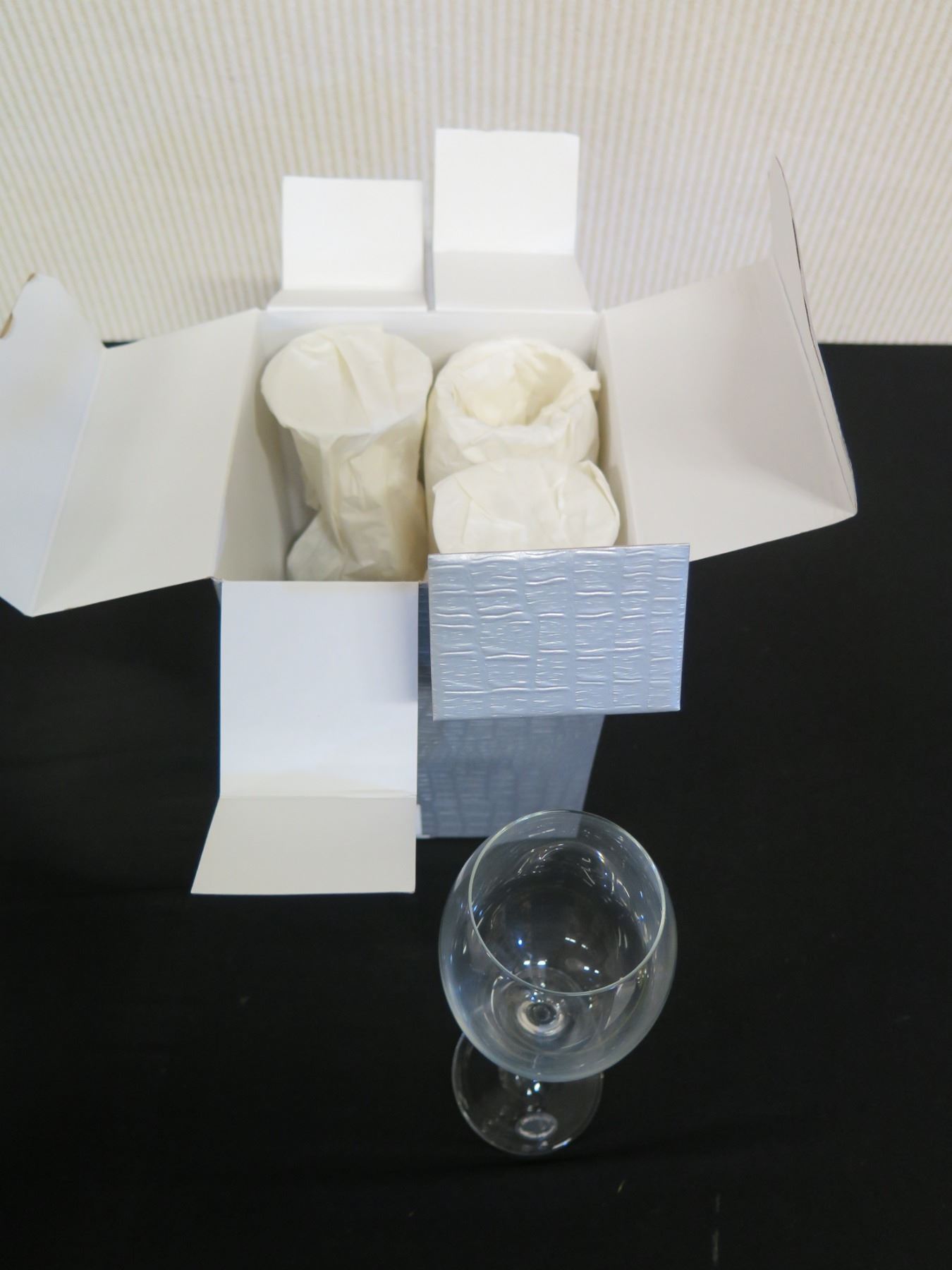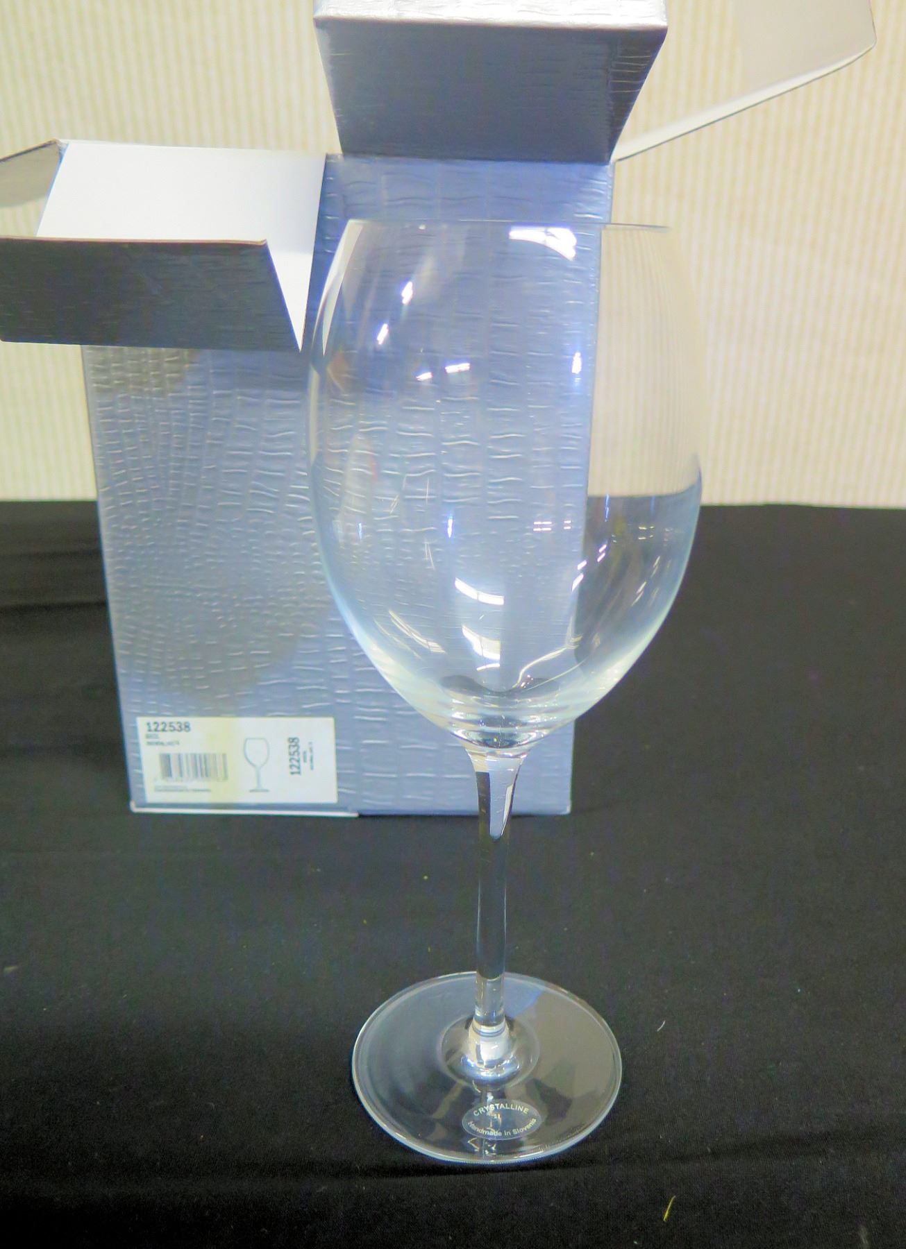 Qty 2 Boxes (4 Glasses) Neiman Marcus Crystalline Wine Goblets Handmade in Slovenia 3"dia, 8.5"H