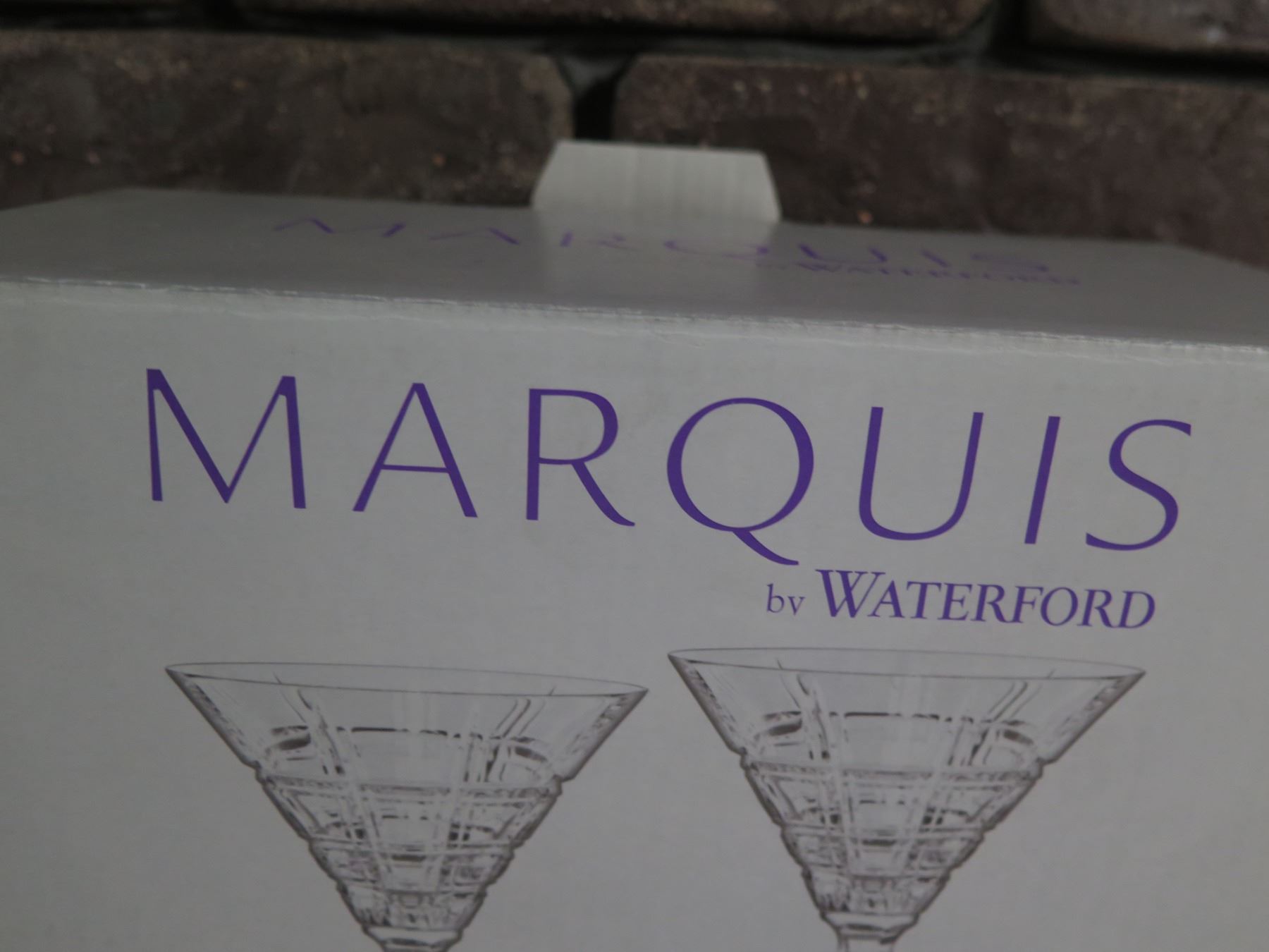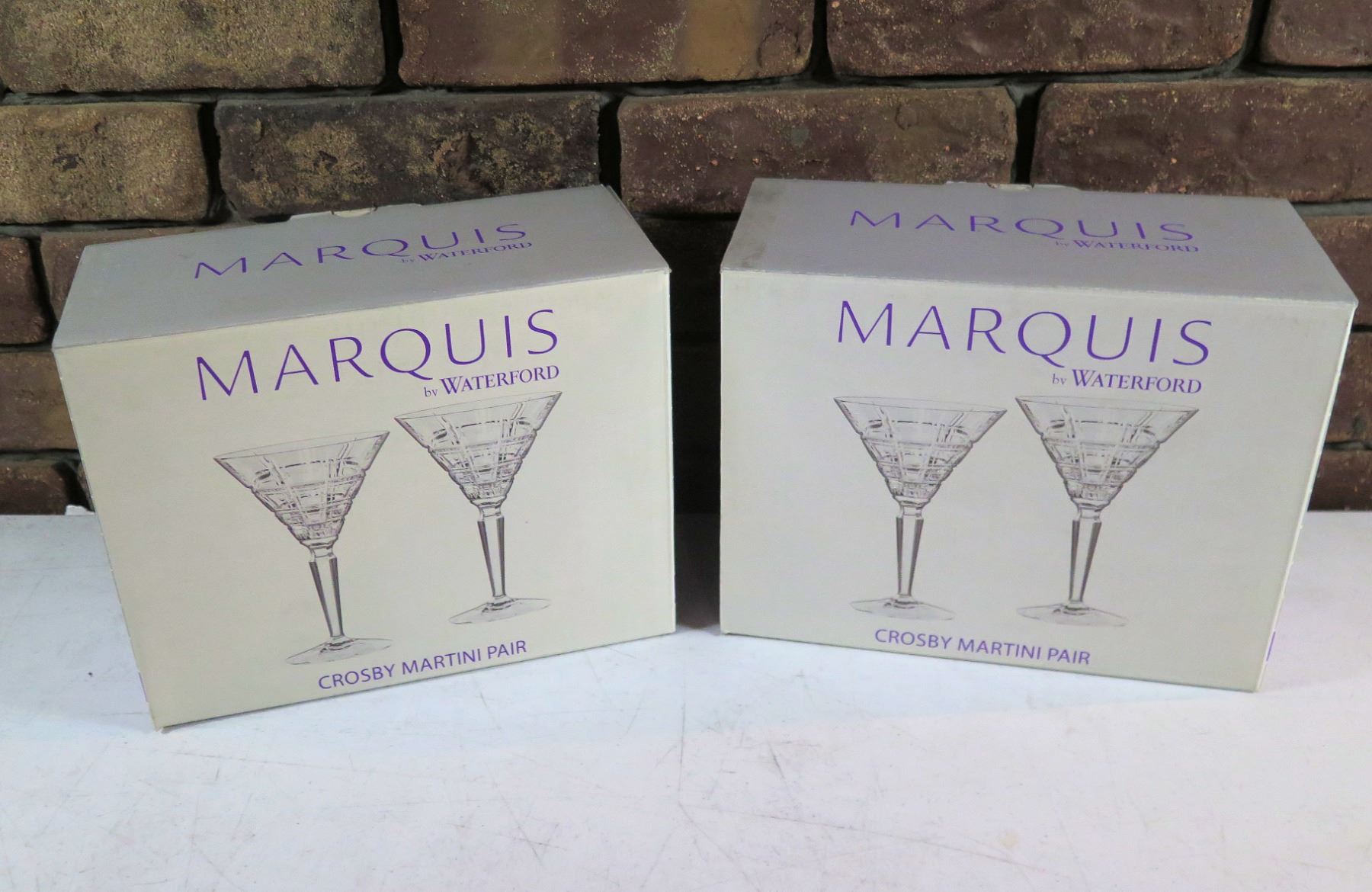 Qty 2 Boxes (4 Glasses total) Marquis by Waterford Crosby Martini Glasses 4.5  dia, 7 H