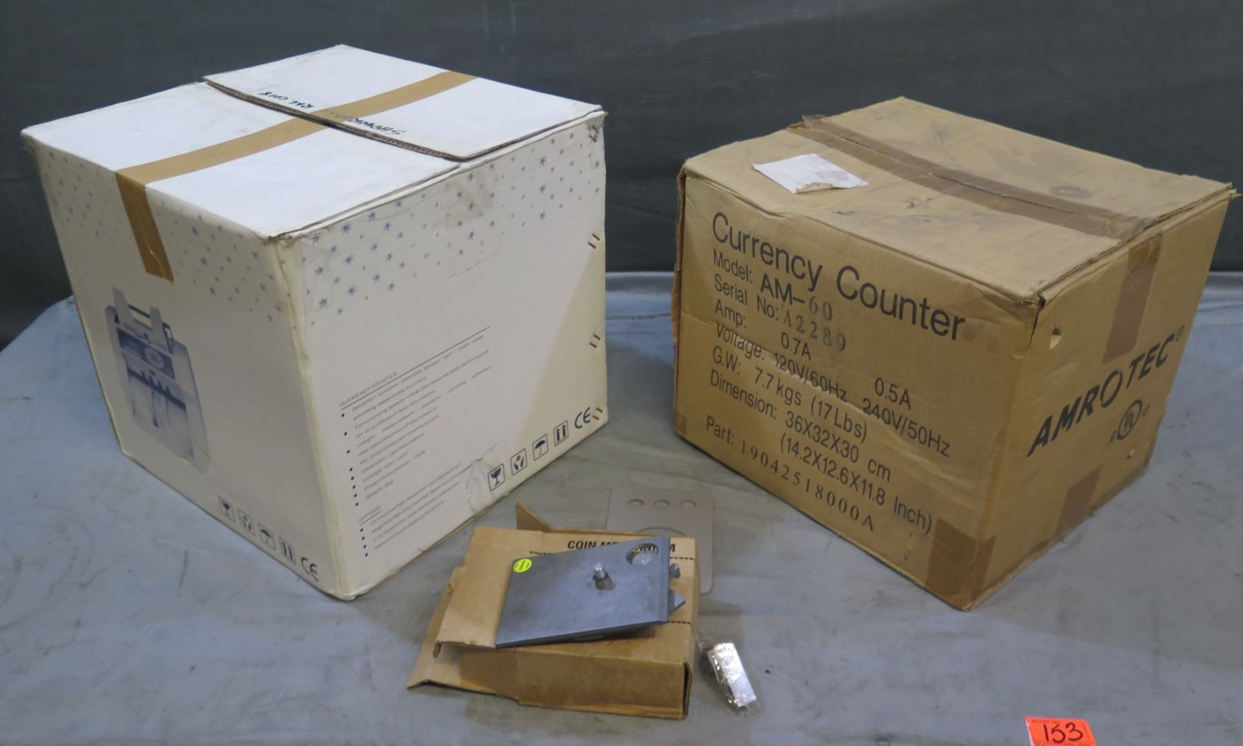 Qty 2 Boxes Diebold AM-60 & Other Portable Coin Sorter & Banknote Counter