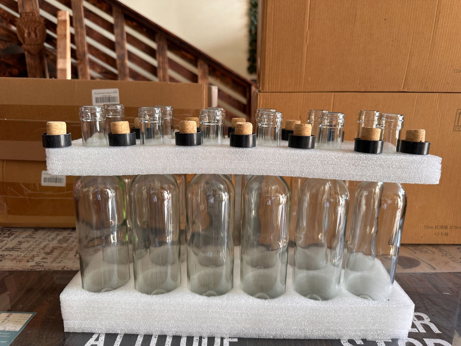 Qty 2 Boxes of 4 & 2 Boxes of 12 (total 32) Encheng Empty 12 oz Glass Bottles w/ Corks