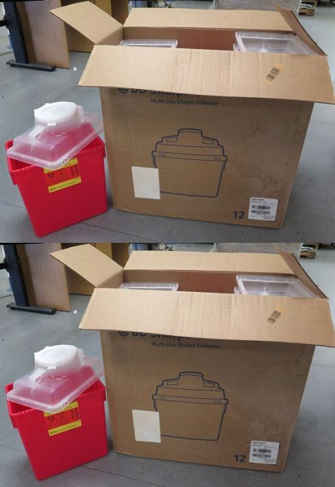 Qty 2 Boxes (total 24) BD 305465 Sharps Collectors 6 gal. w/ Lids