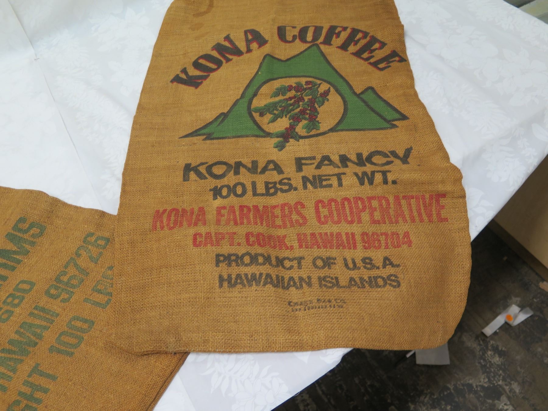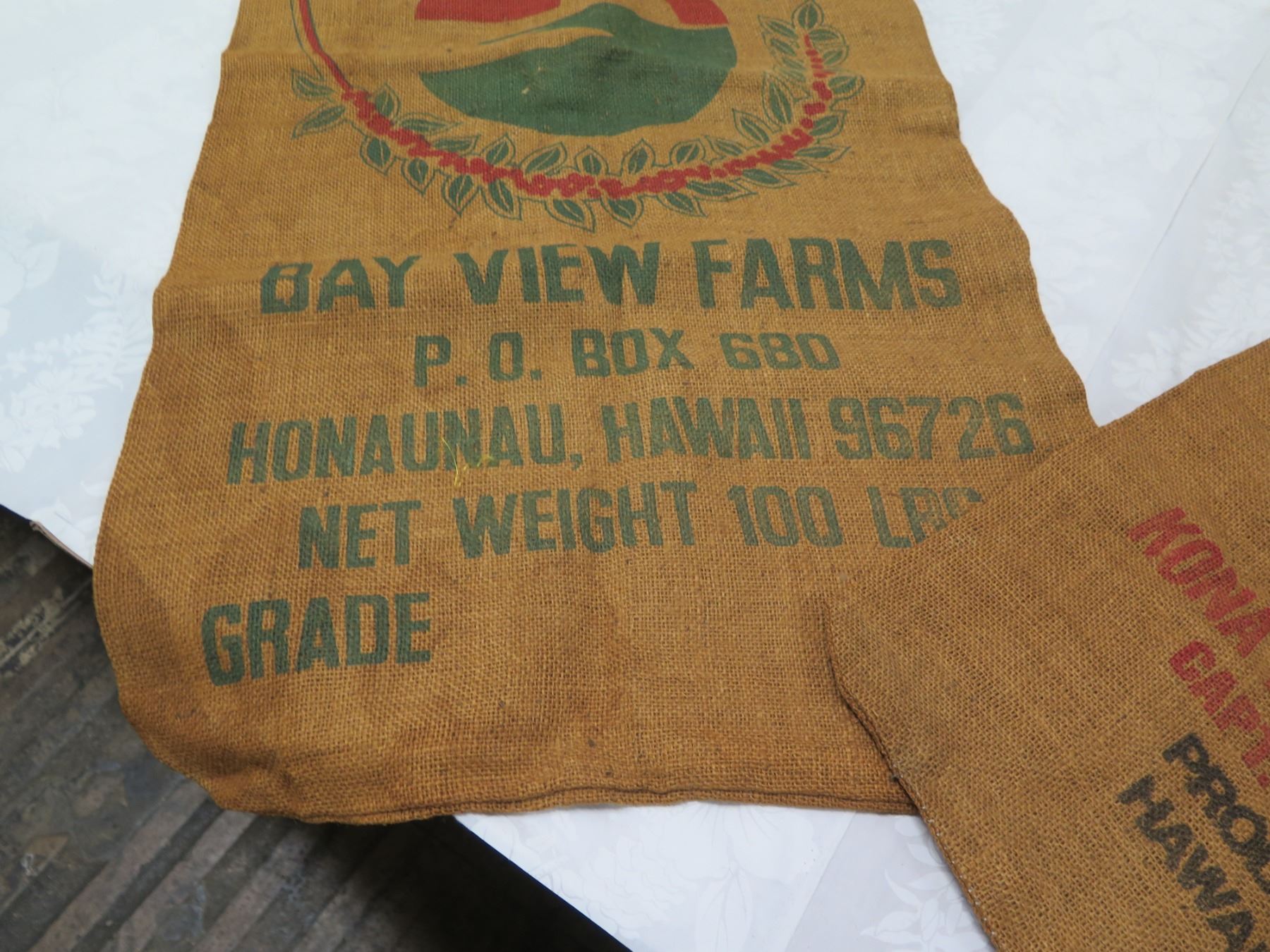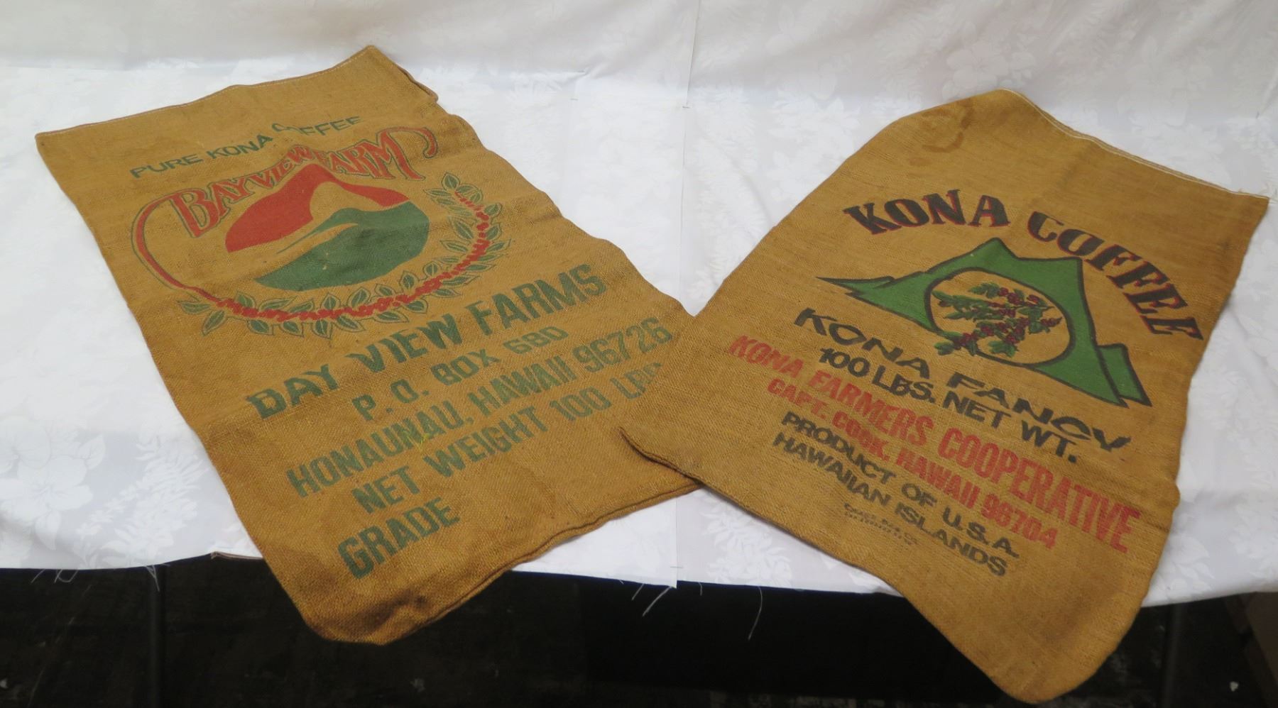 Qty 2 Burlap Bags: Kona Coffee & Day View Farms