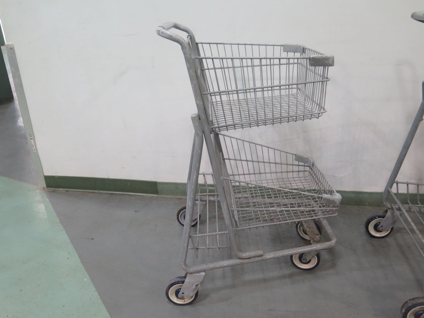 Qty 2 Cari-All Double Basket Express Shopping Carts. These are stock photos, representative of item. Condition may vary.