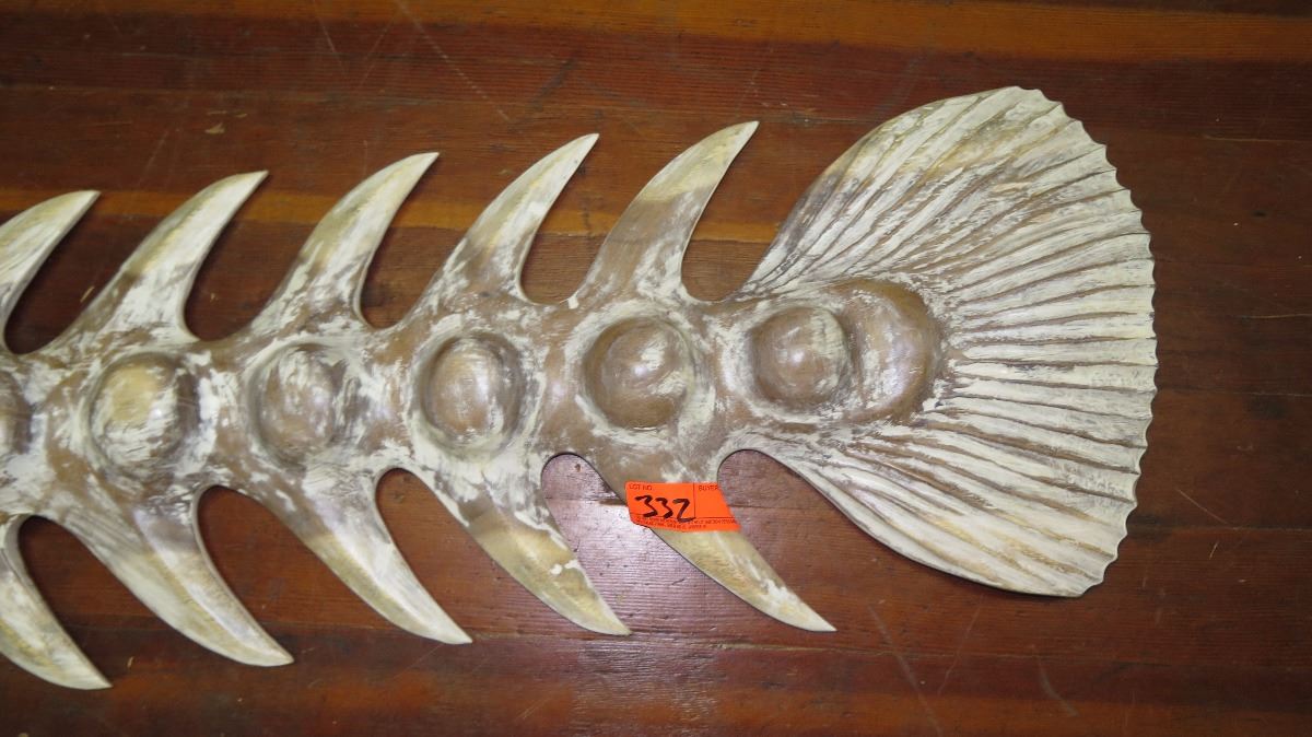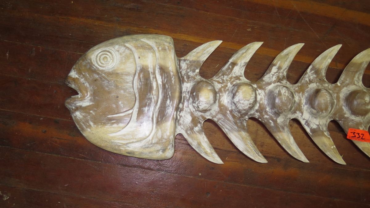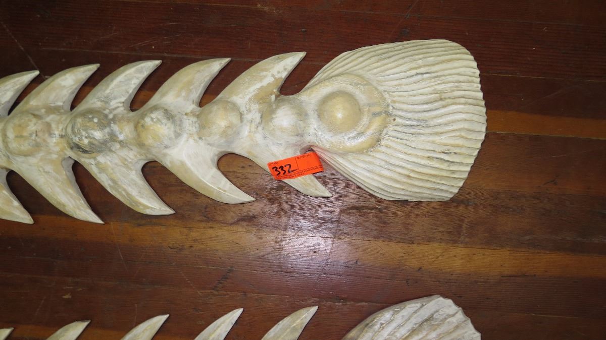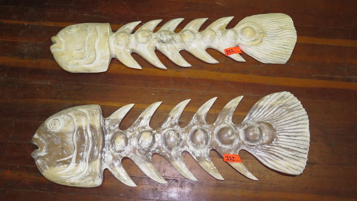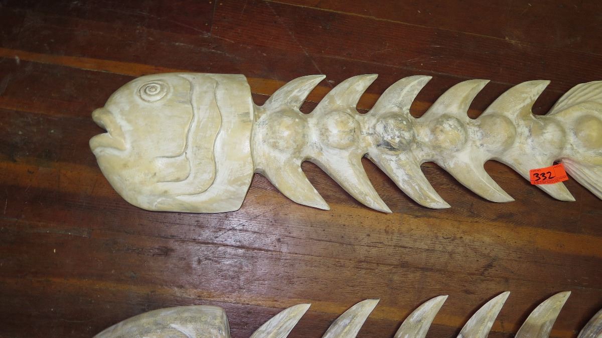 Qty 2 Carved Hardwood Fish Skeleton - Light Wash (flat back) 40" L