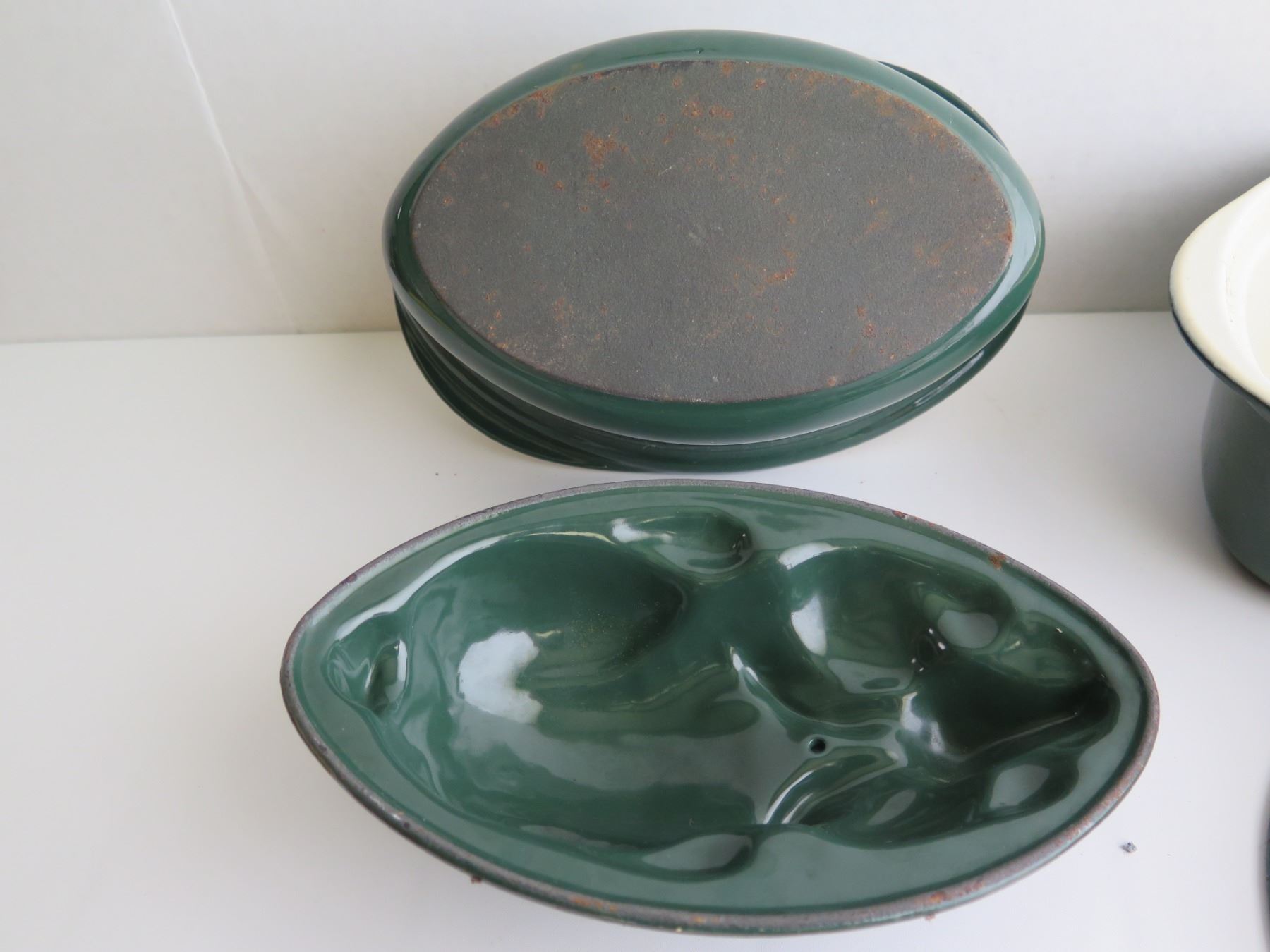 Qty 2 Ceramic Rabbit Terrine, Oval, Green, 5" Tall