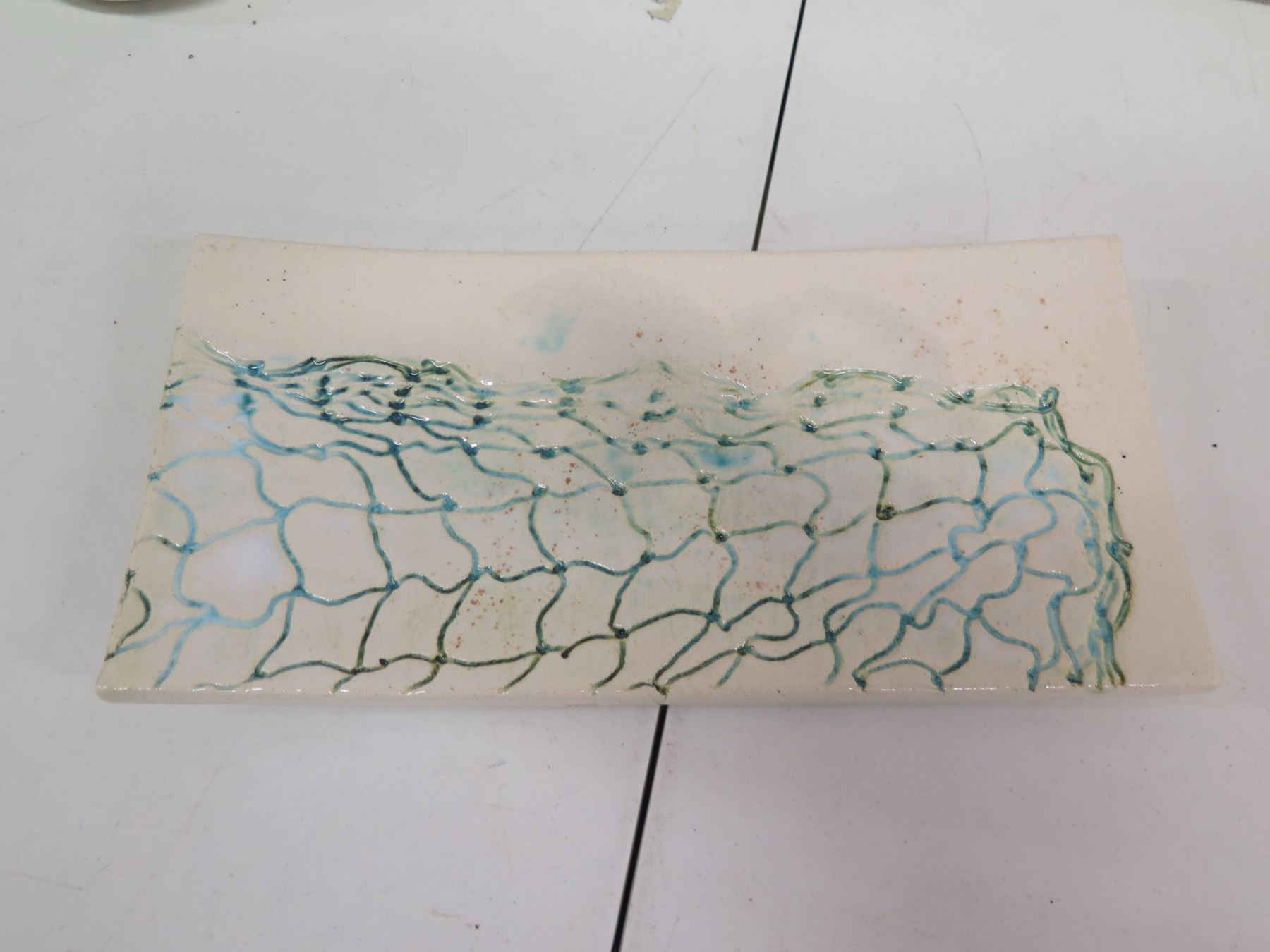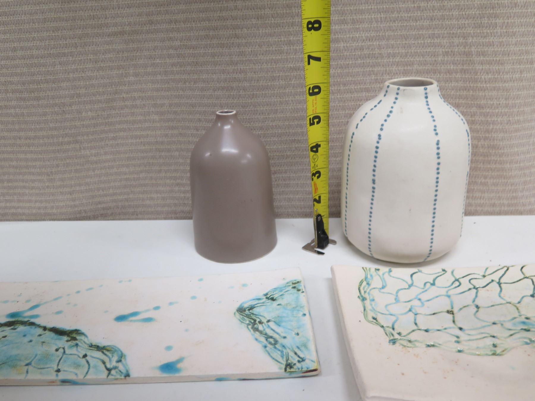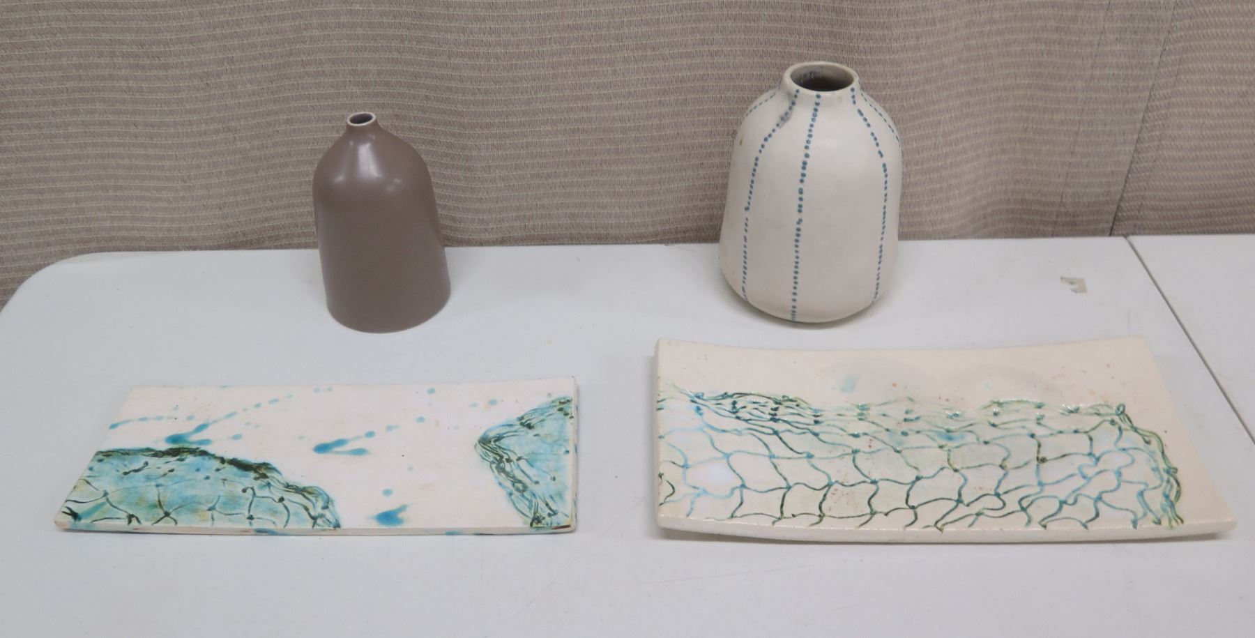 Qty 2 Ceramic Vases & 2 Sashimi Trays Signed by Artist