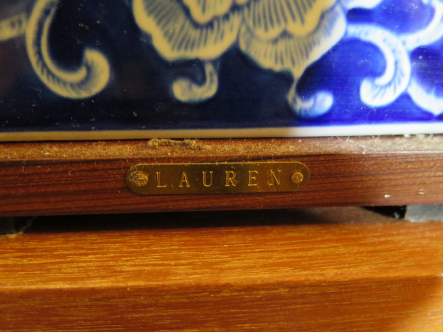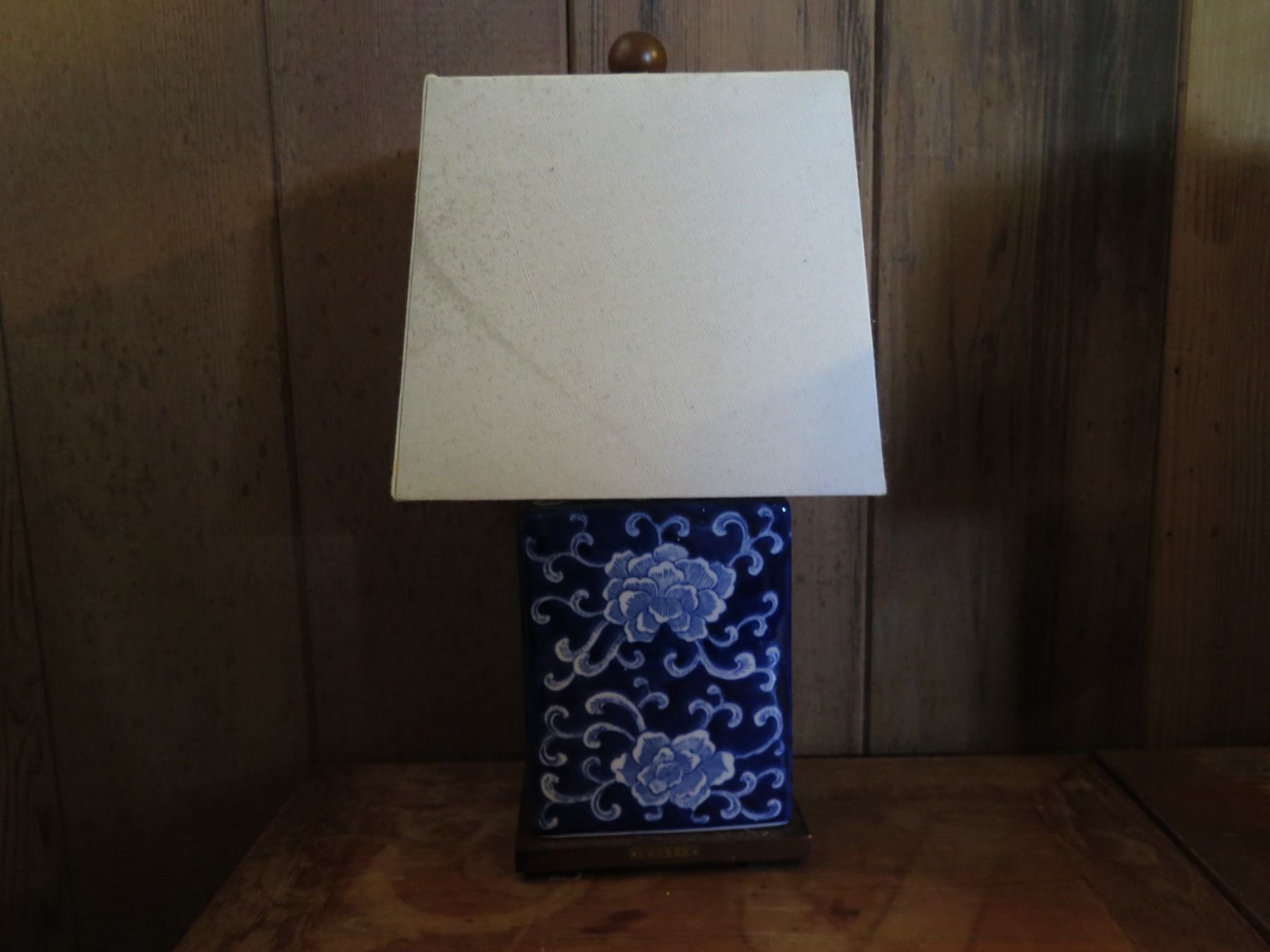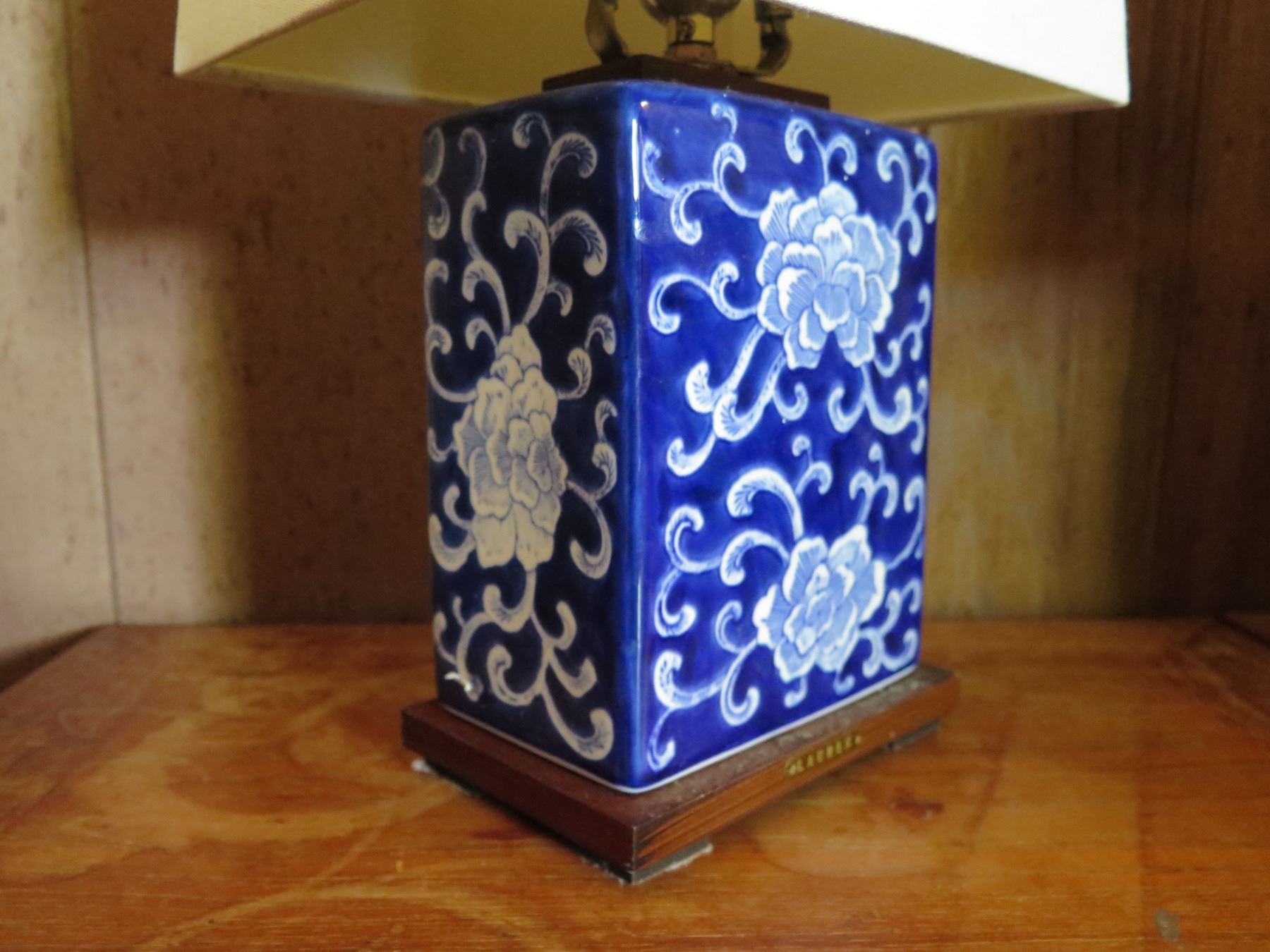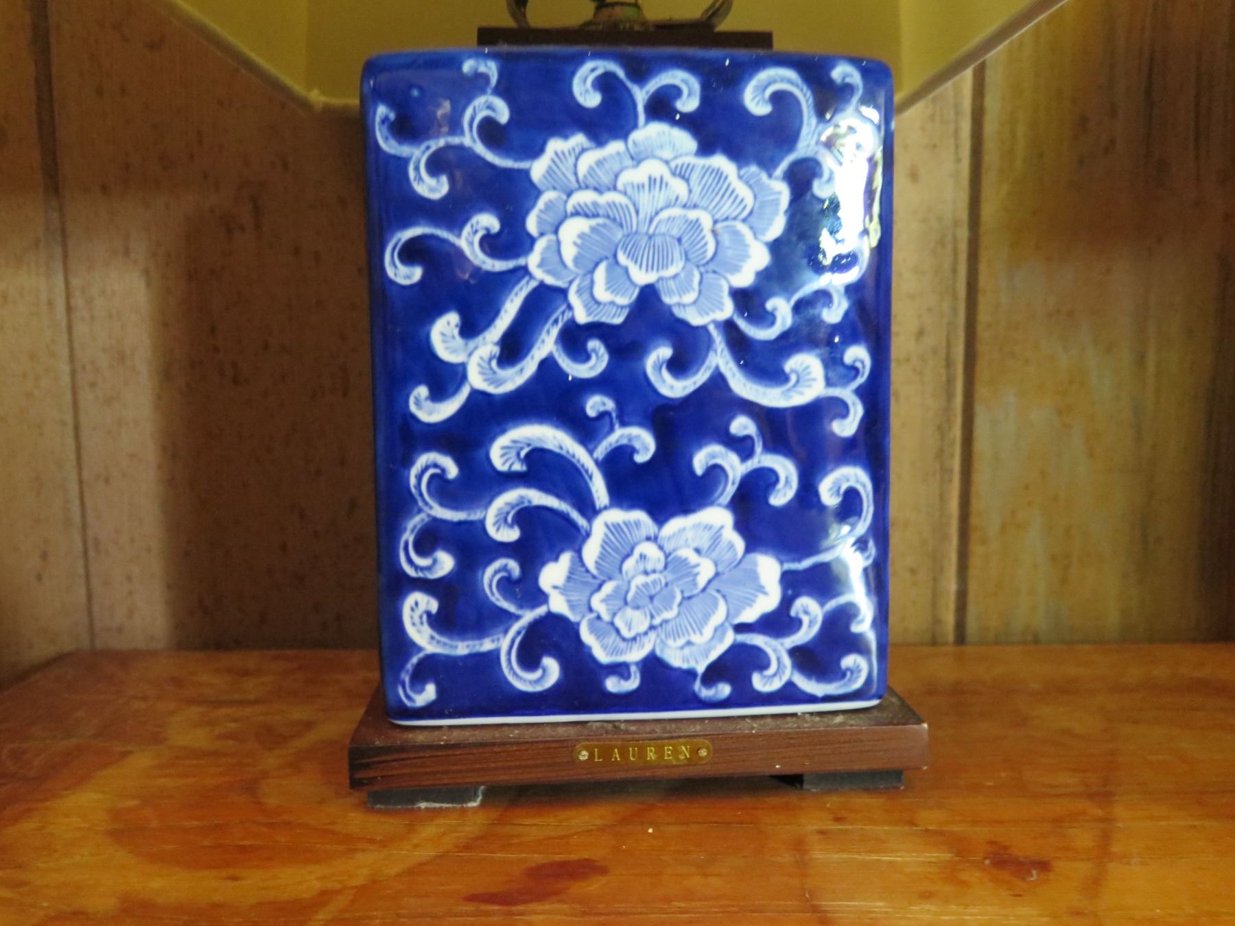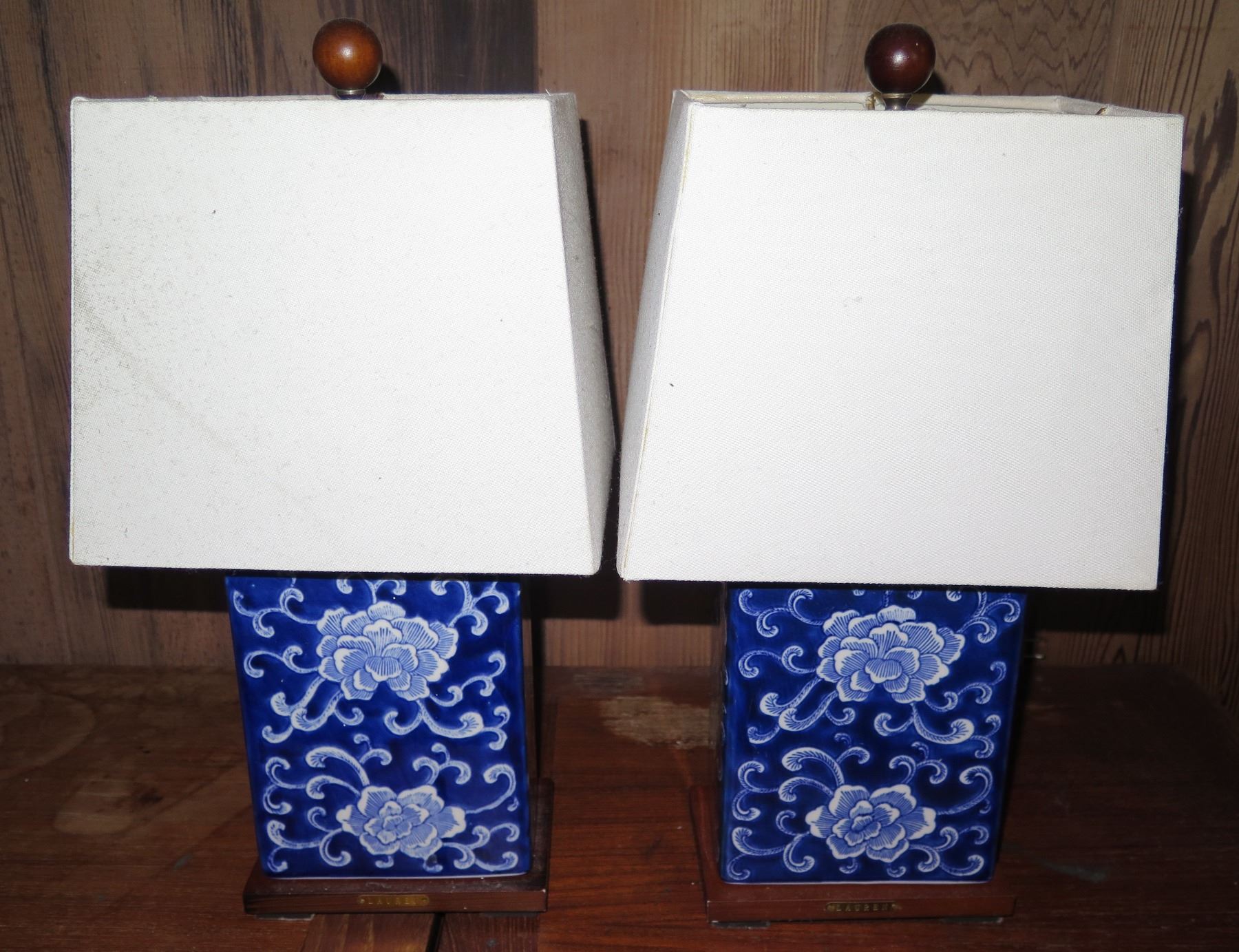 Qty 2 Chinese Porcelain w/ Lampshades, Floral Blue/White Ralph Lauren