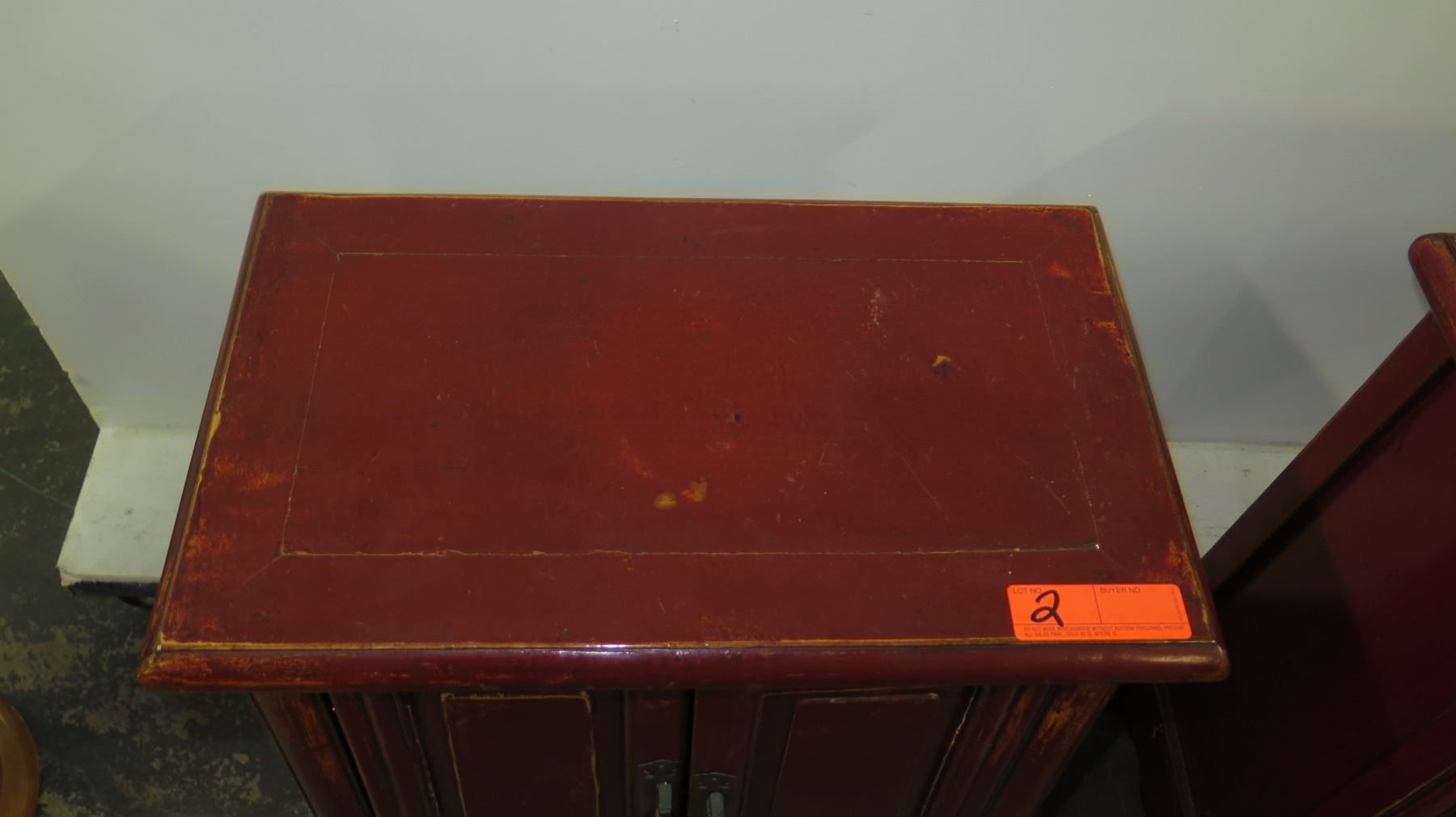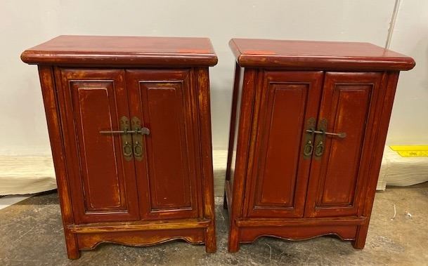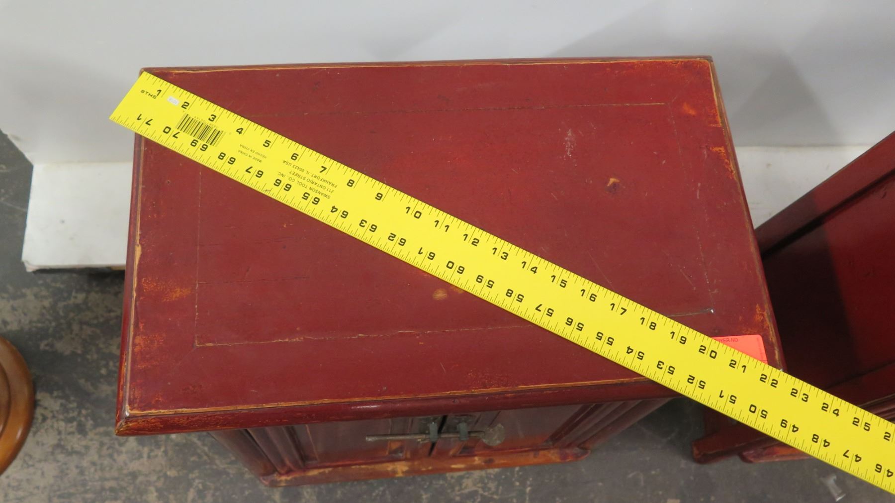 Qty 2 Ching Dynasty Red Lacquered Ming-Style Chinese Stationery Chests, Elm & Chines Fir Wood, Restored. Origin: Northern China. Includes Certificate of Antiquity. 27" H