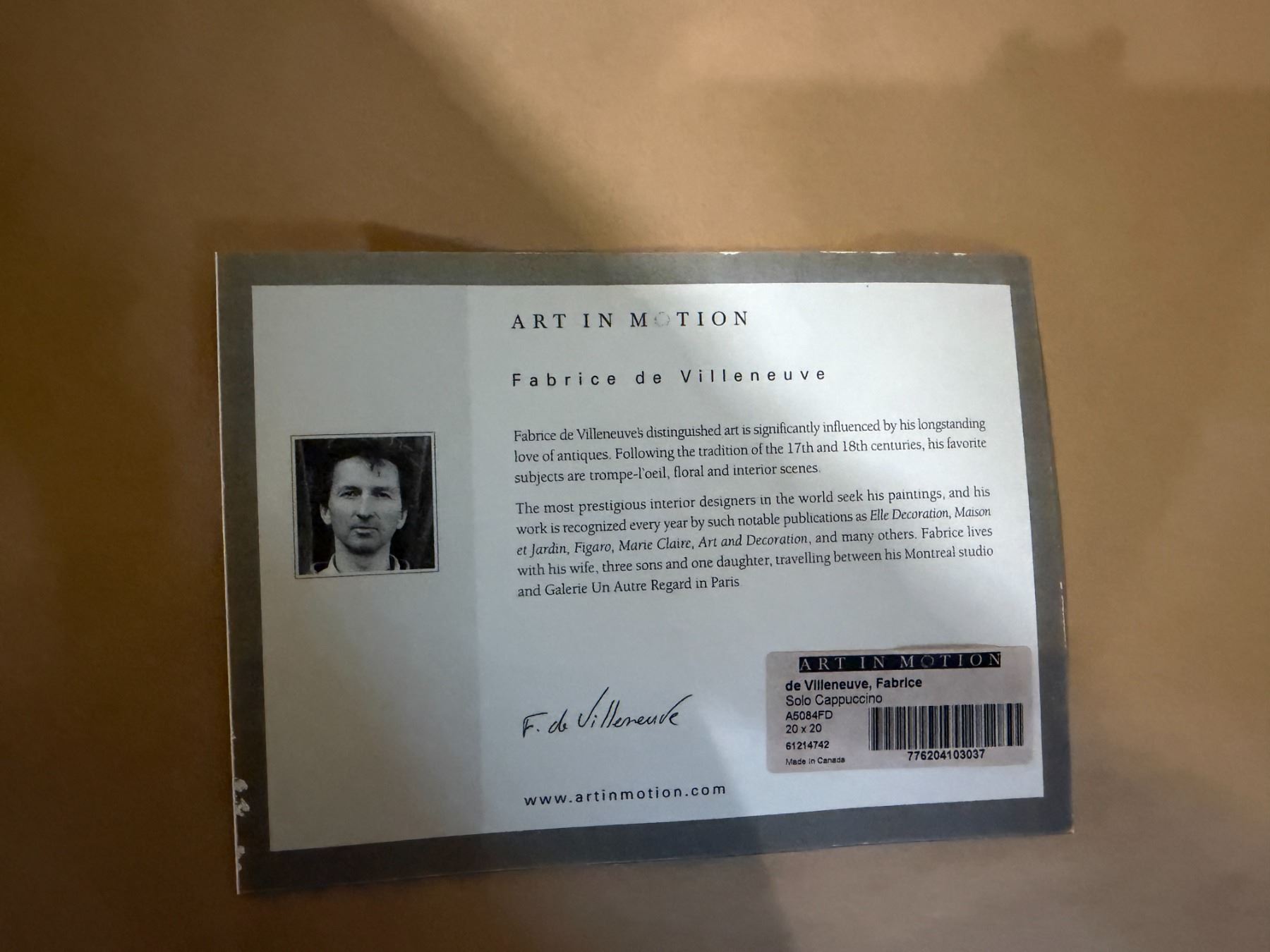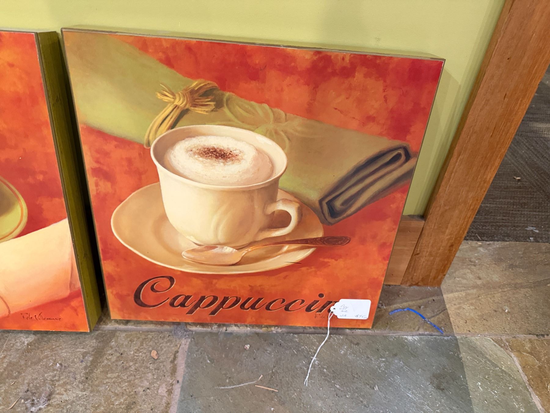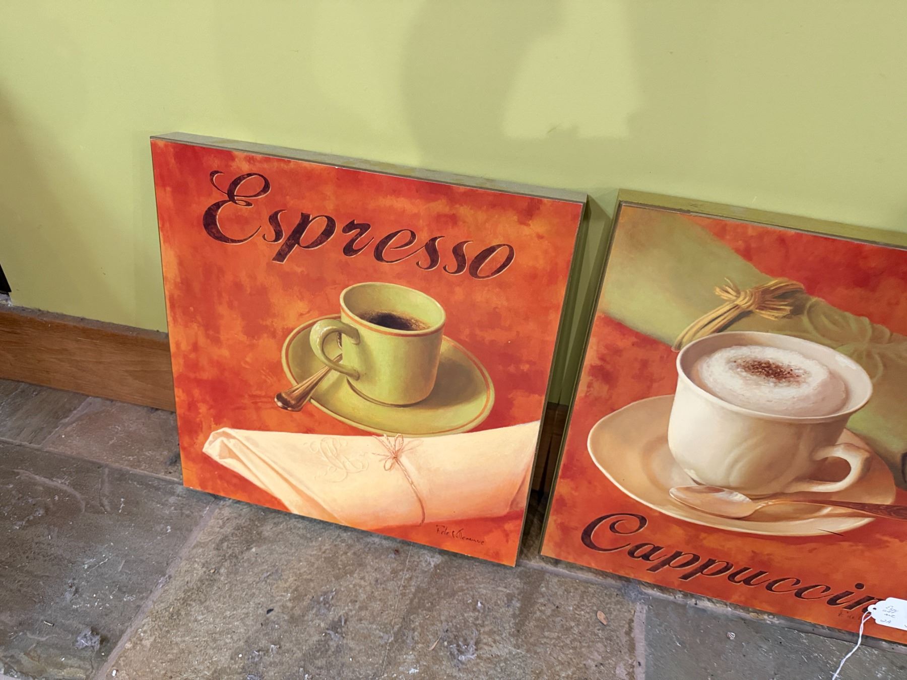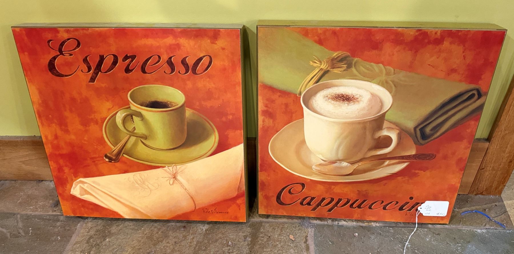 Qty 2 Coffee Artwork by Fabrice de Villeneuve: Espresso & Cappuccino 19" x 20.5"