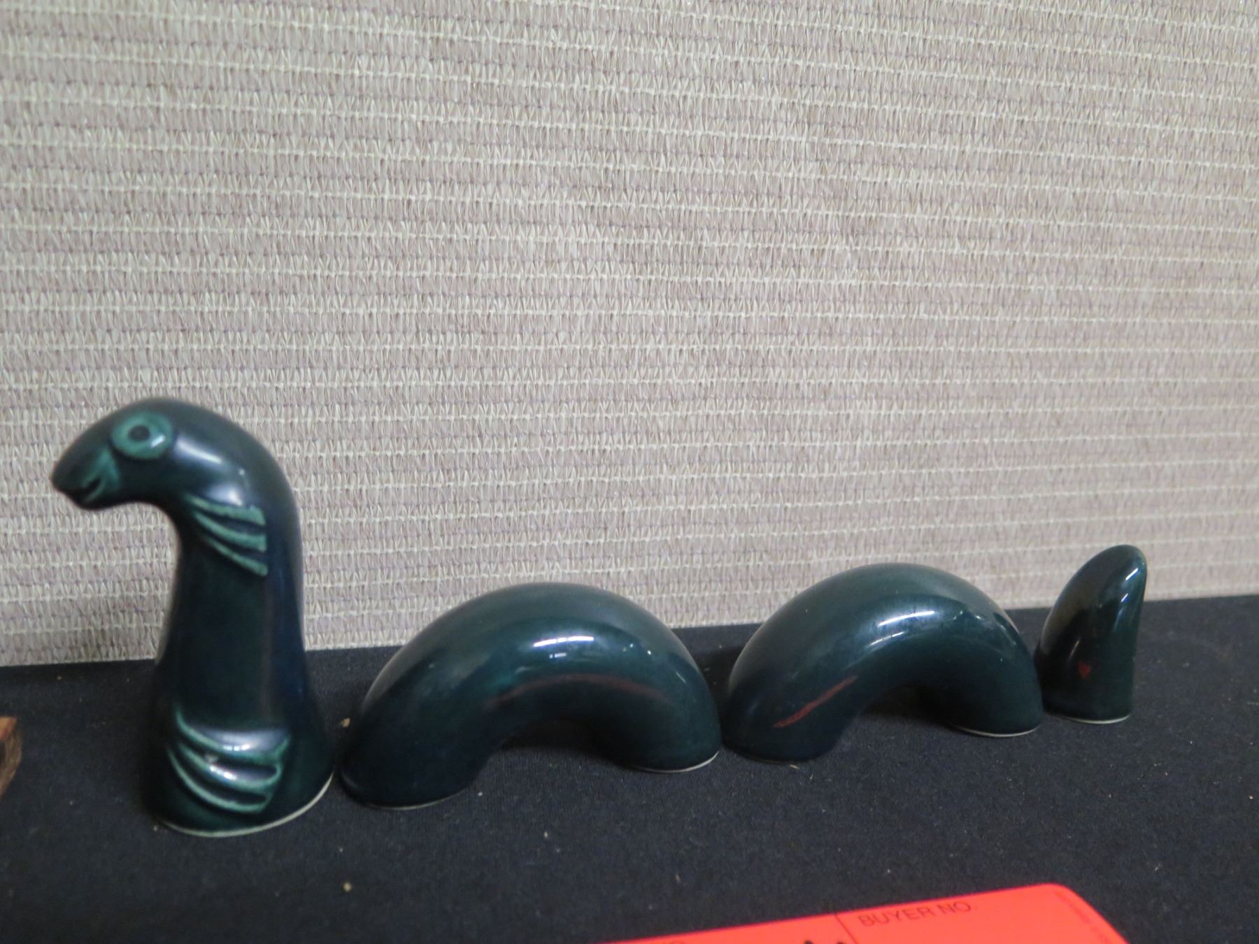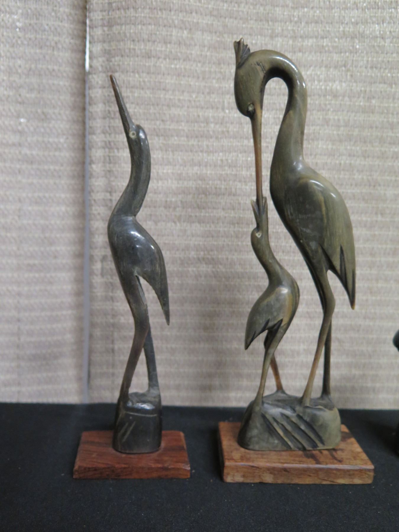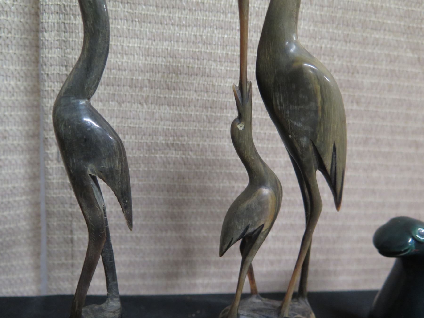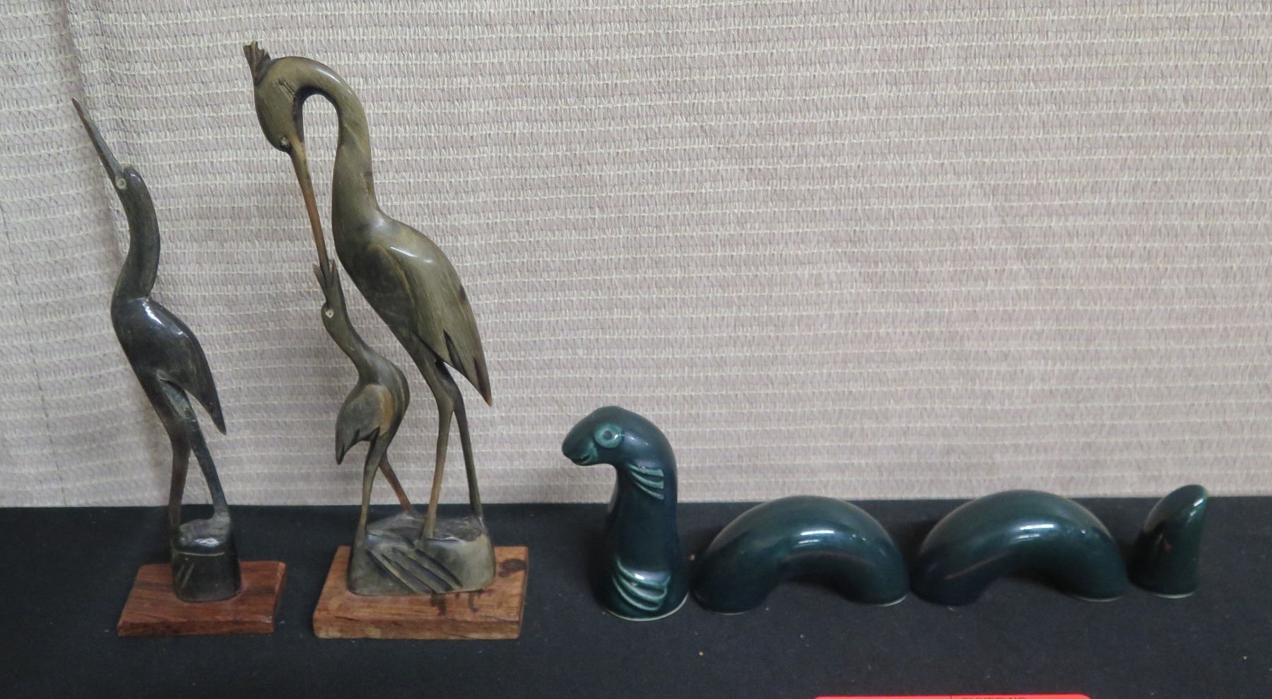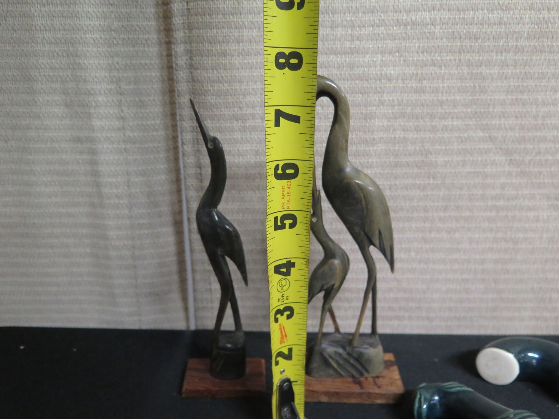 Qty 2 Crane Statues on Square Base & 4 Section Sea Monster Figurine