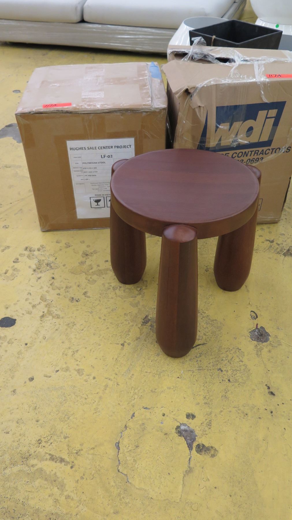 Qty 2 Dark Wood Polynesian Stools (Plant Stands or Side Tables), 14" Dia., 16" H