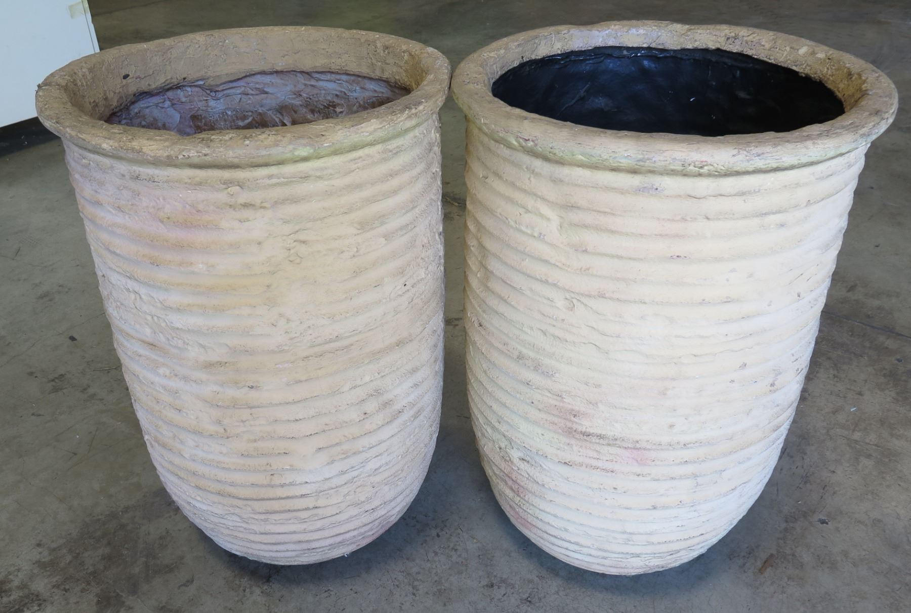 Qty 2 Decorative Ribbed Planter Pots 12"Dia x 30" Tall