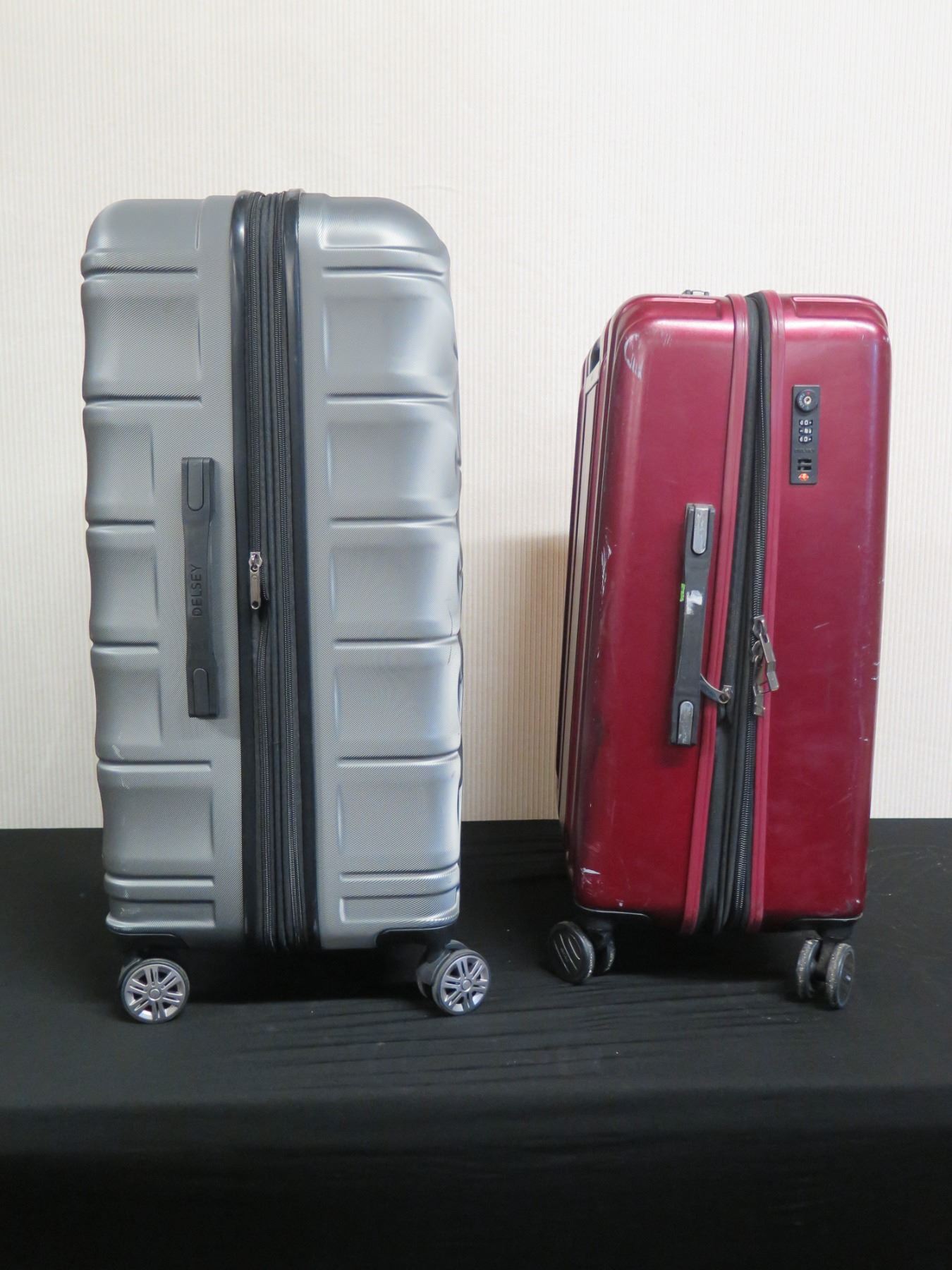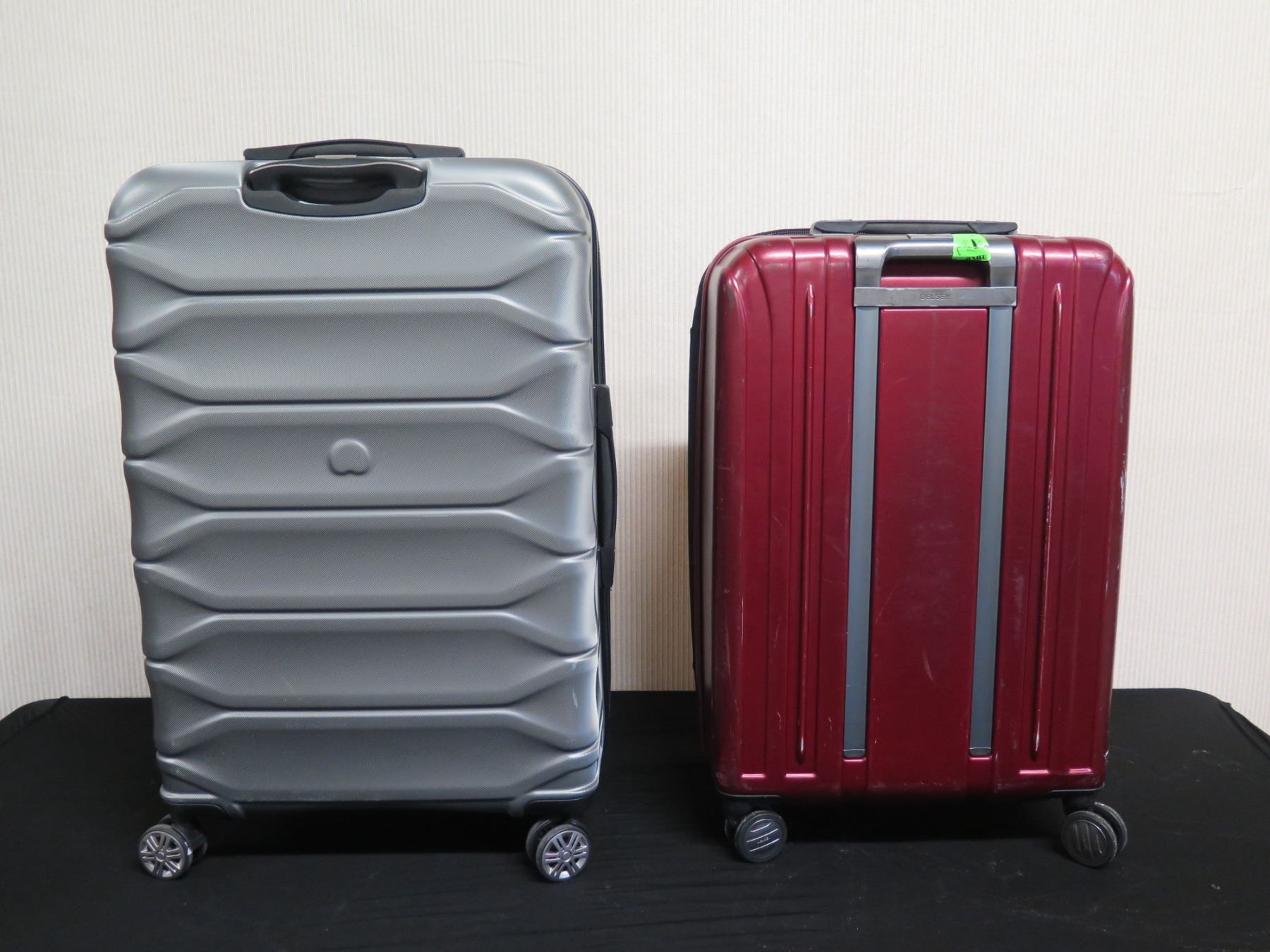 Qty 2 Delsey Rolling 4-Wheel Suitcases, Misc Sizes