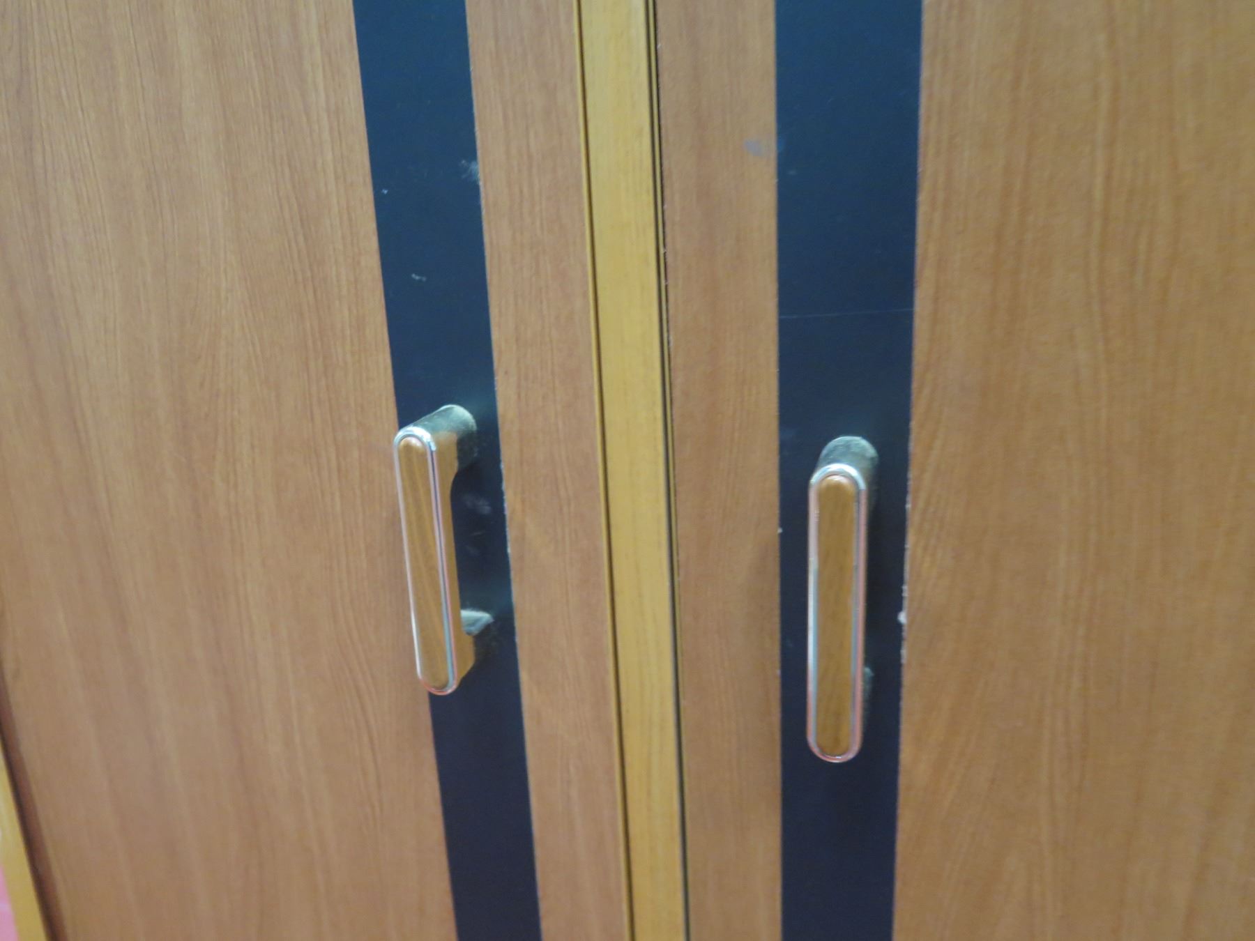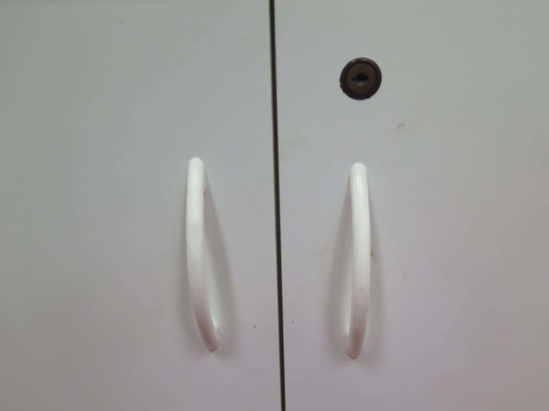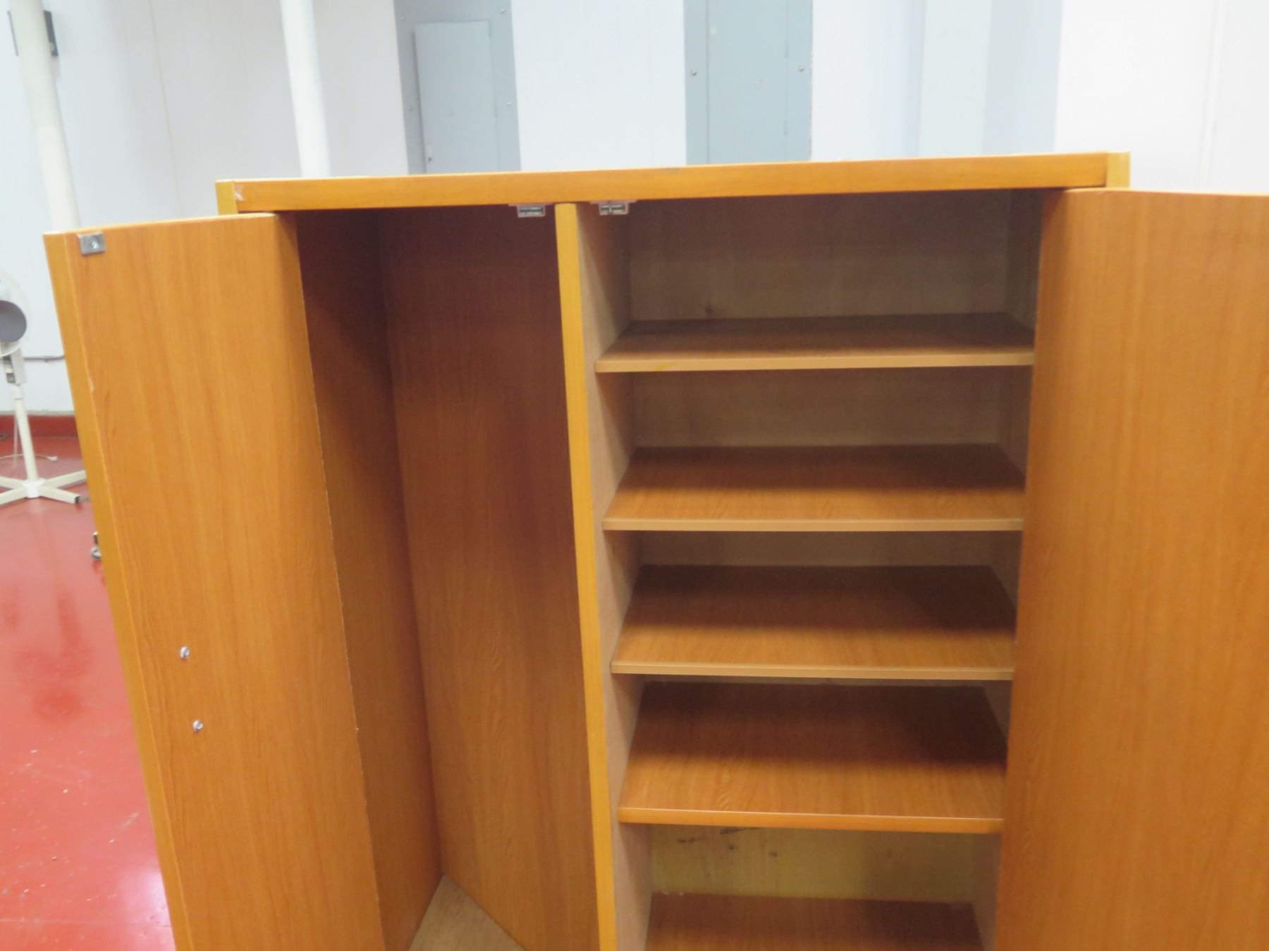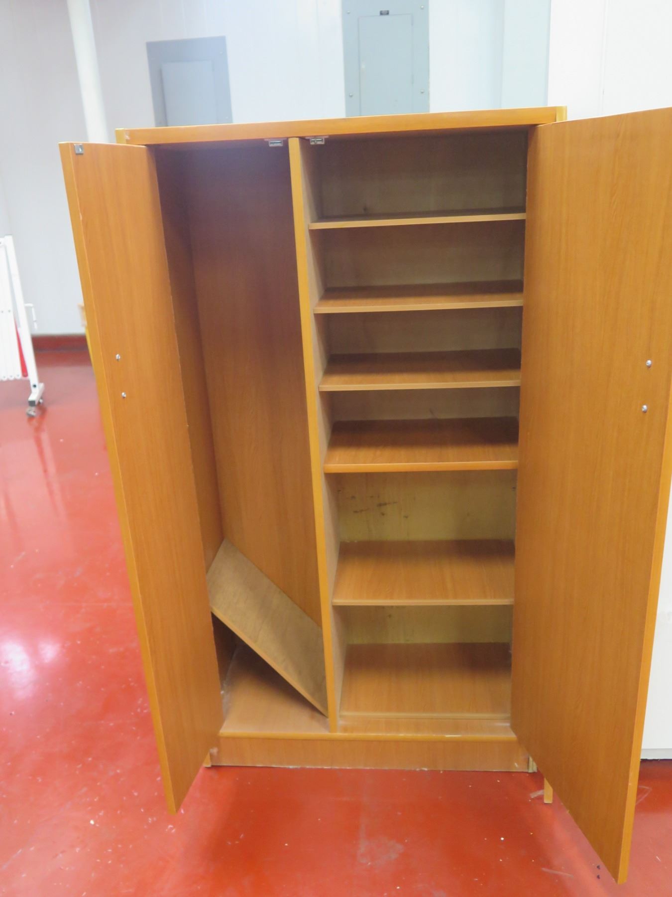 Qty 2 Double Door Cabinets: White 9 Section 30"x16"x72" & Wood 9 Tier 30"x14"x53"H
