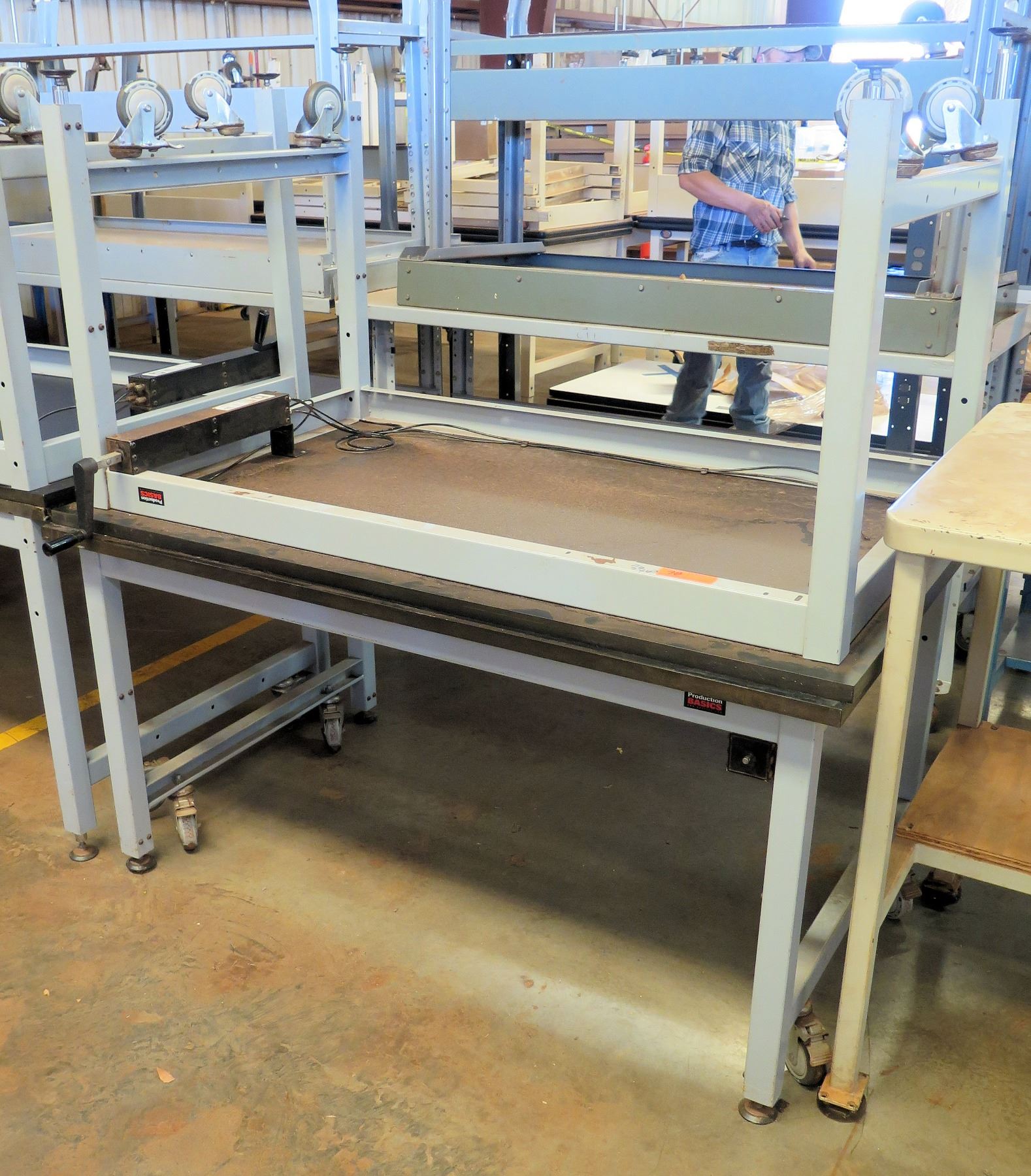 Qty 2 Dyna-Lift Bucher Hydraulics Adjustable Height Work Tables 4M-D1A-12-S24