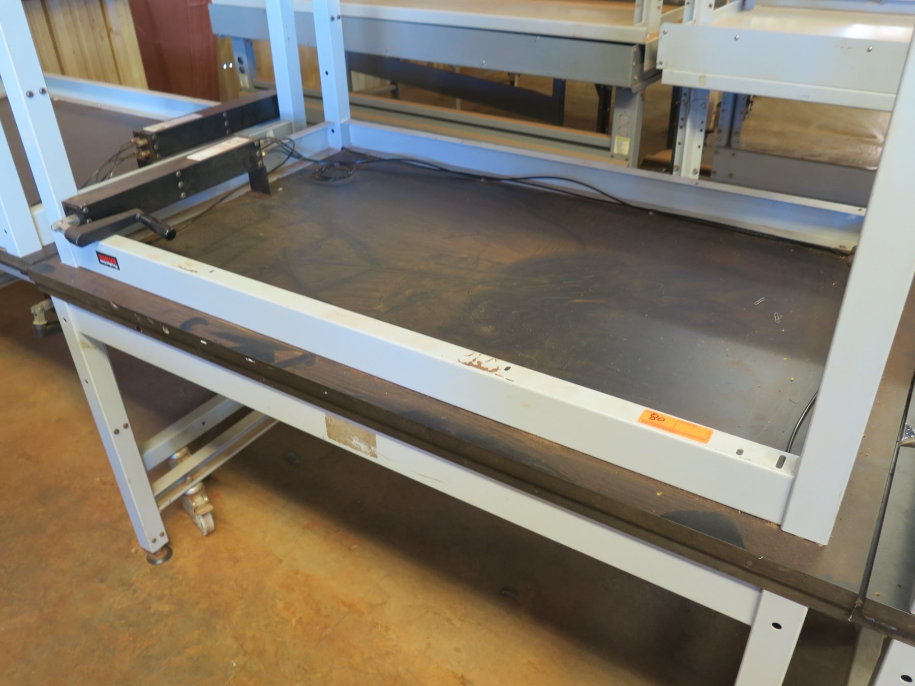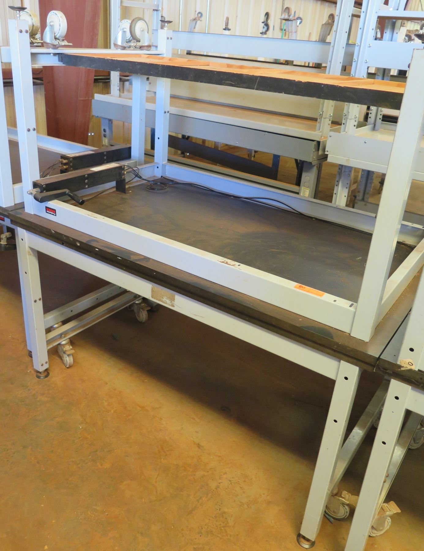 Qty 2 Dyna-Lift Bucher Hydraulics Adjustable Height Work Tables 4M-D1A-12-S26