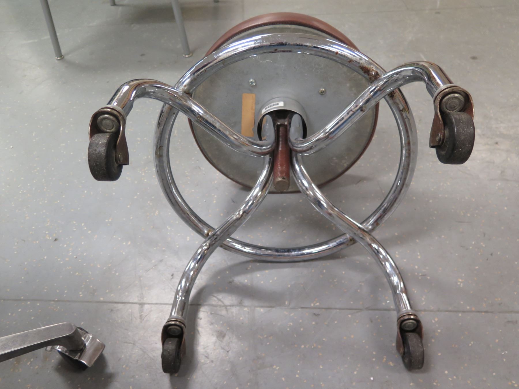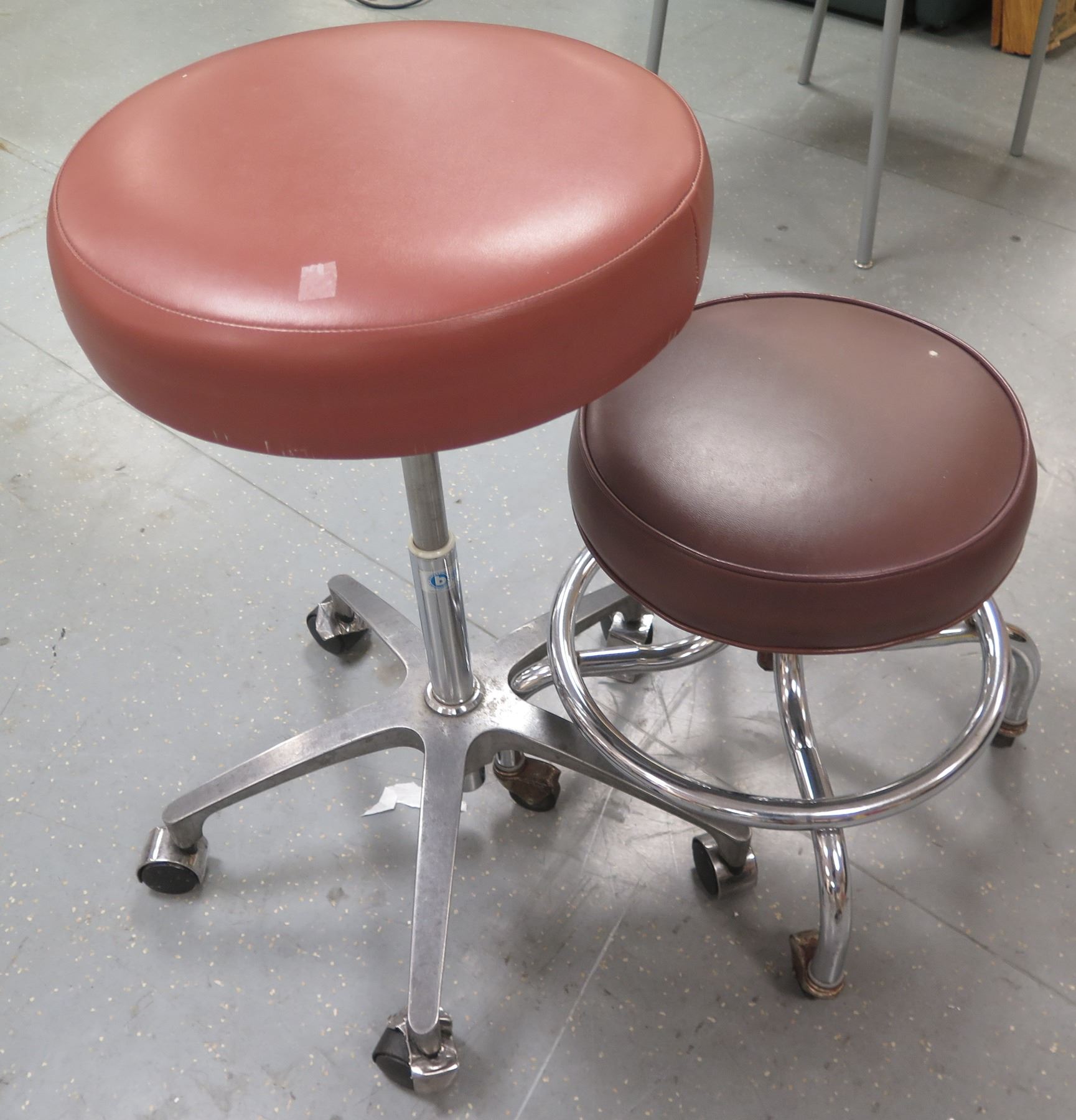 Qty 2 E.F. Brewer Rolling Stools w/ Padded Seats