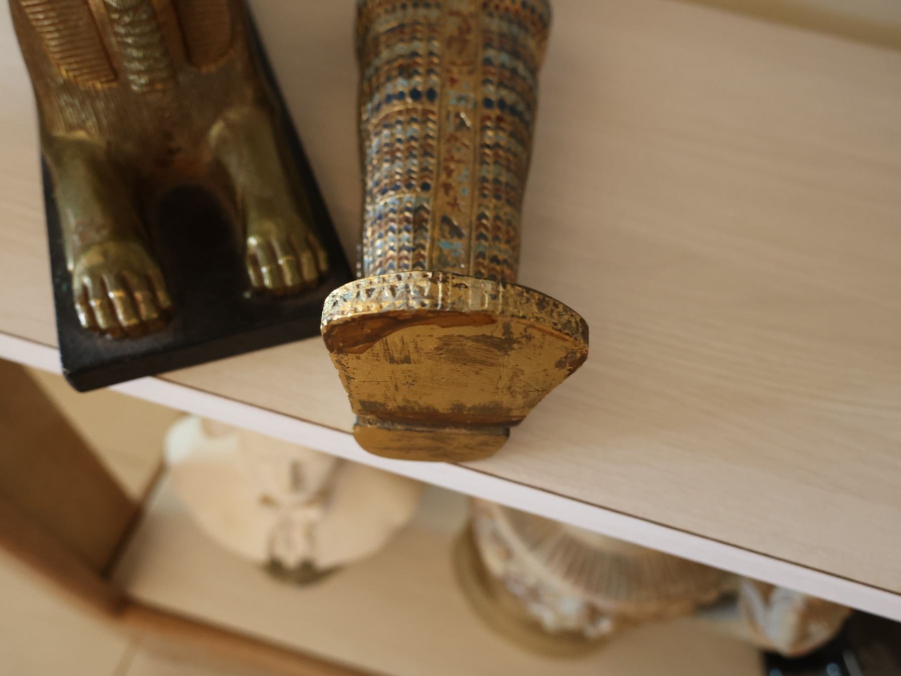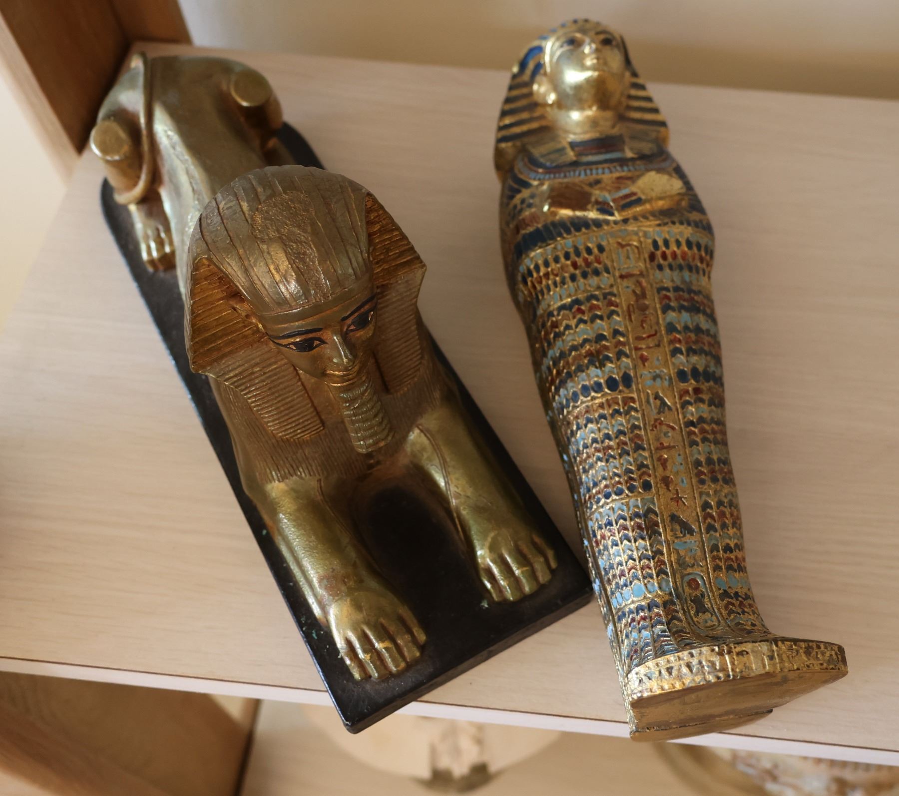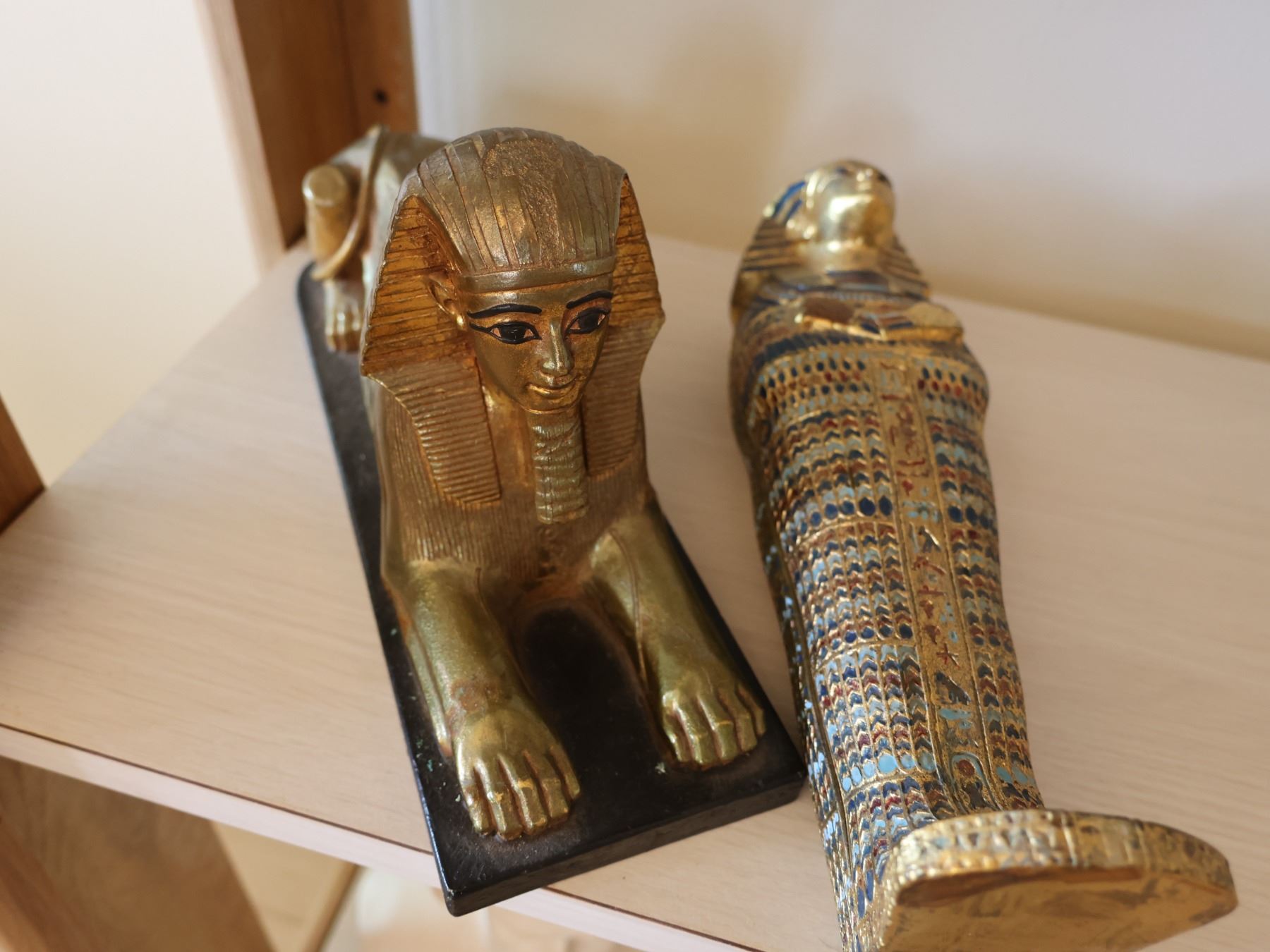Qty 2 Egyptian Décor: Sphinx & Isis Metal Figurines, Misc Sizes
