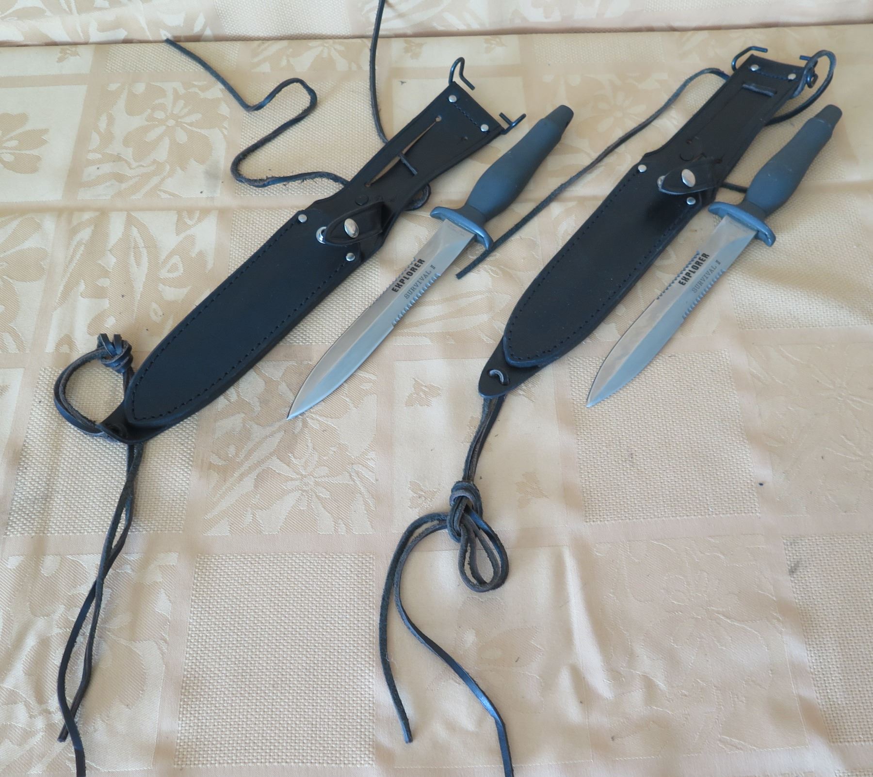 Qty 2 Explorer Survival II Knives 440 Stainless 21-041 Japan w/ Sheaths 14"L