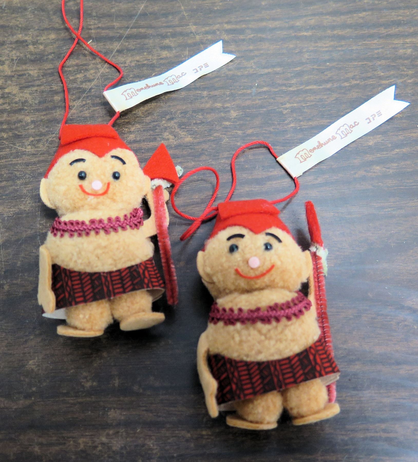 Qty 2 Fabric Menehune Mac Hanging Ornaments 1.5"x2.5"H