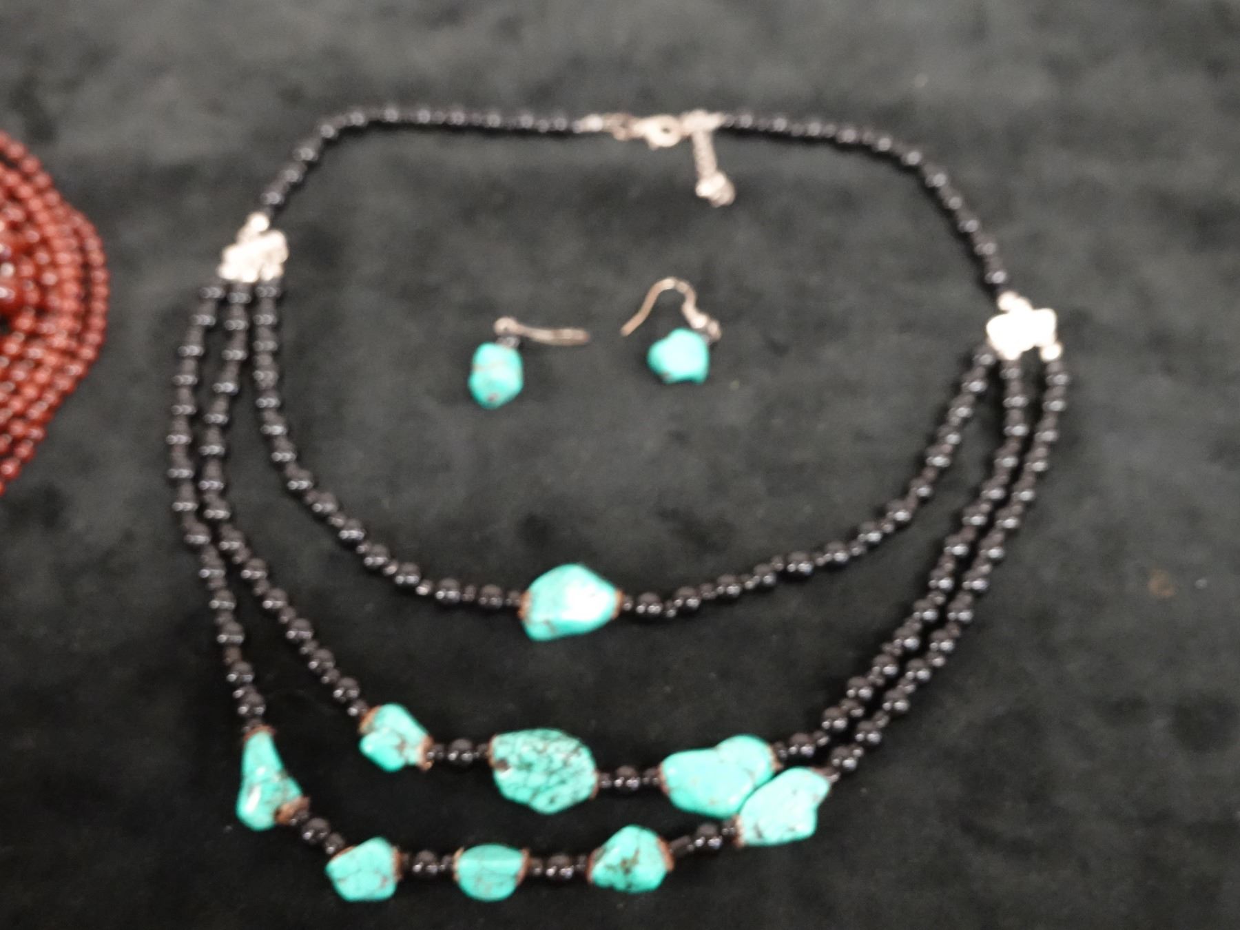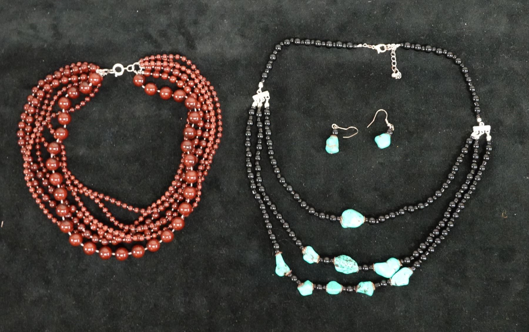 Qty 2 Fashion Beaded Necklace w/ 1 Pair Matching Earrings, Misc Sizes