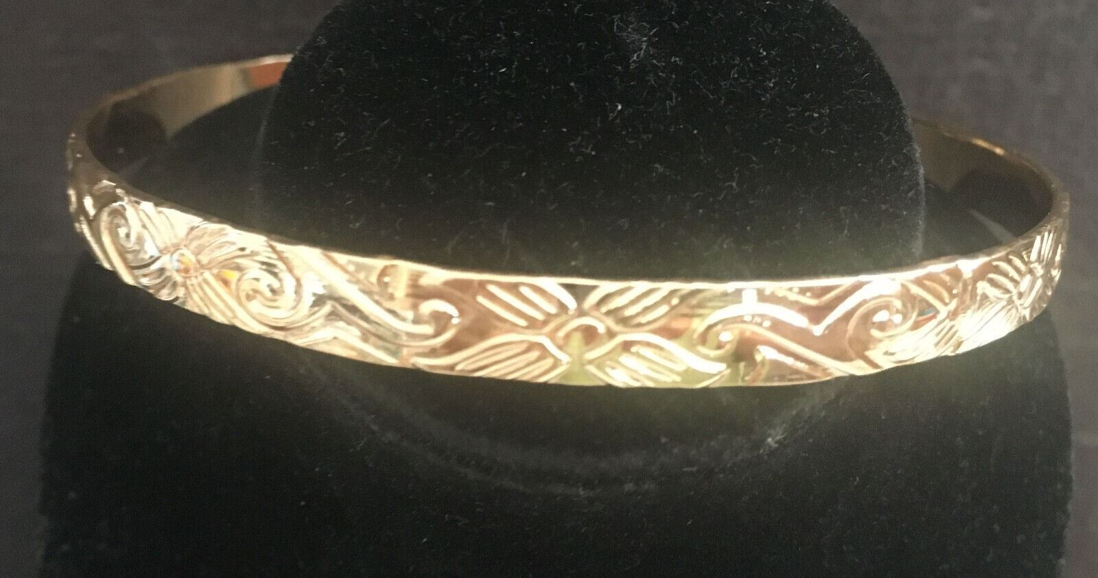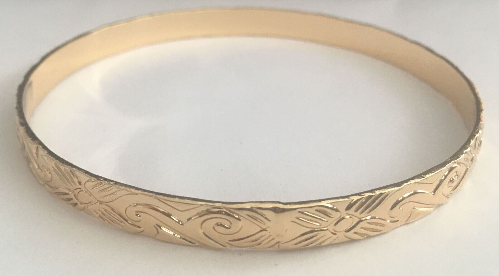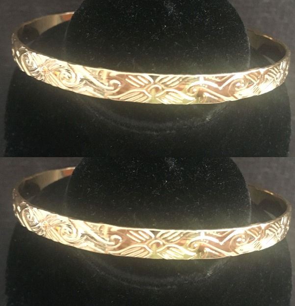 Qty 2 Fashion Gold-Tone Floral Swirl 5mm Hawaiian Bangle Bracelet (large - 80mm dia)