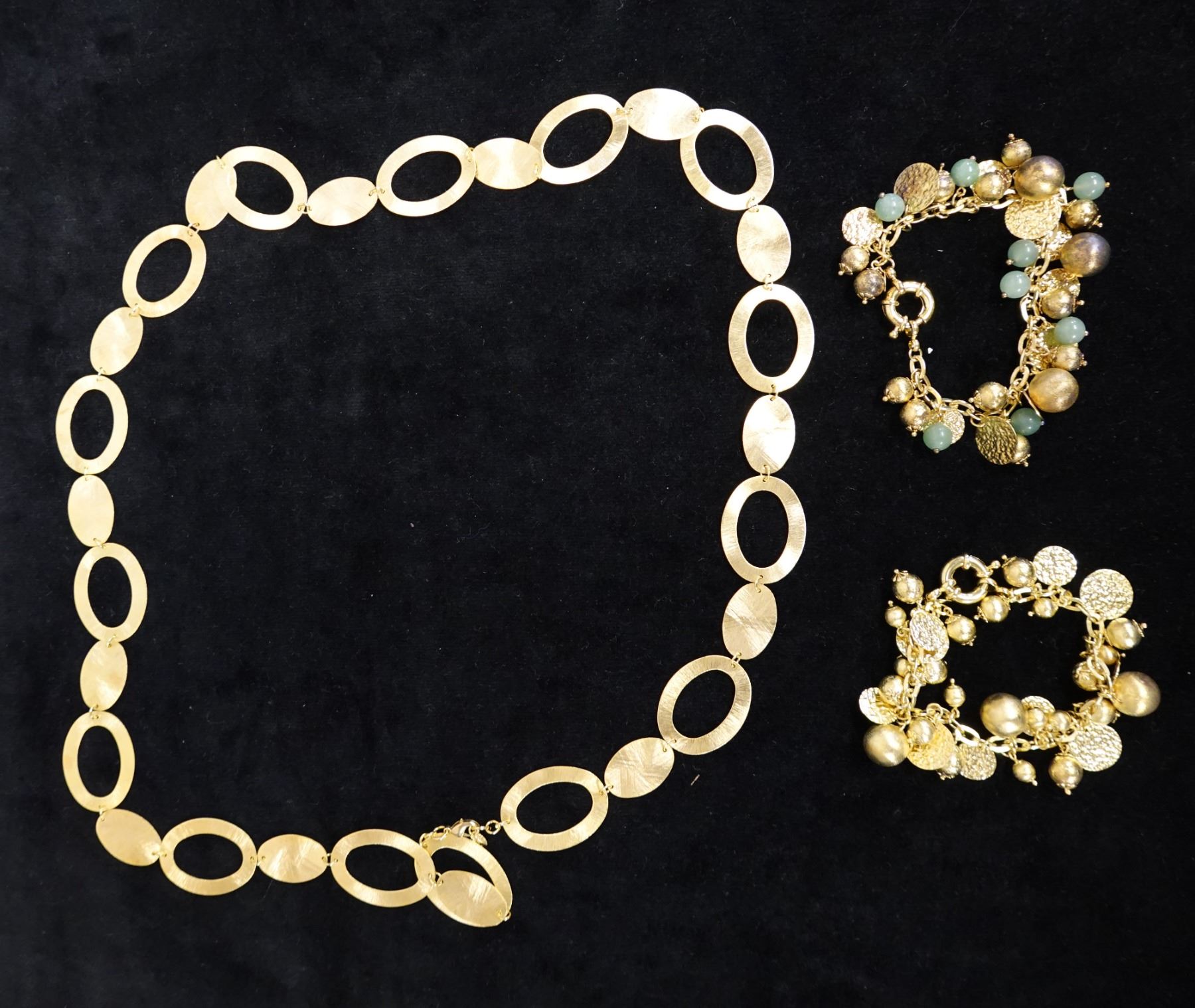 Qty 2 Fashion Link Bracelets w/ Bead Accents & 1 Necklace, Misc Styles & Sizes