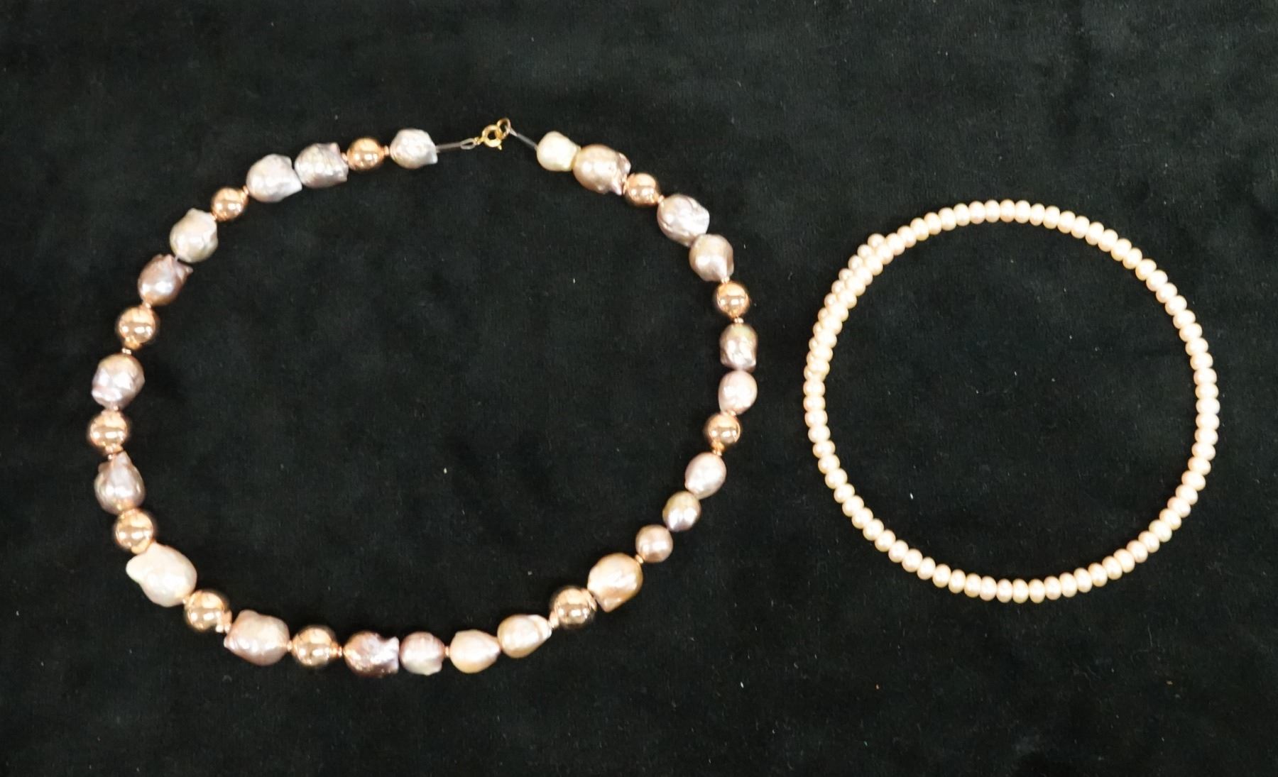 Qty 2 Fashion Necklaces w/ Pearl Beads, Misc Sizes