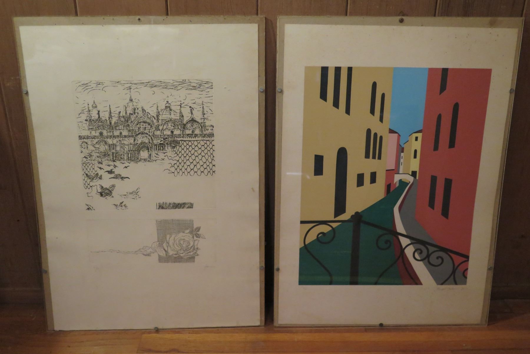 Qty 2 Framed Art, Black/White Drawing Limited Edition Signed Ralph Fabri, Buildings Print Signed