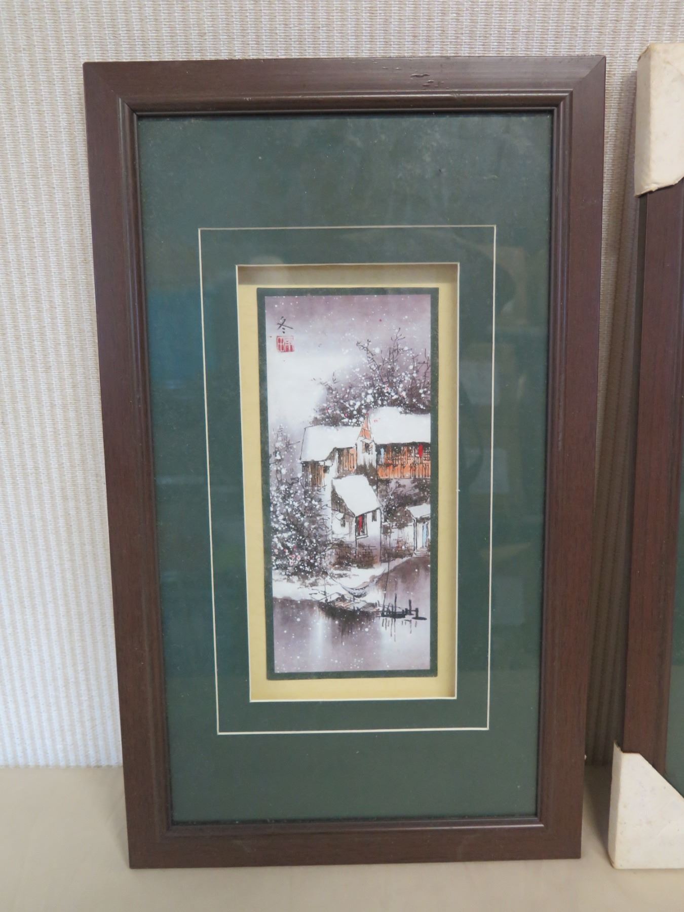 Qty 2 Framed Art w/ Maker's Mark, Matted 11" x 20" (each)