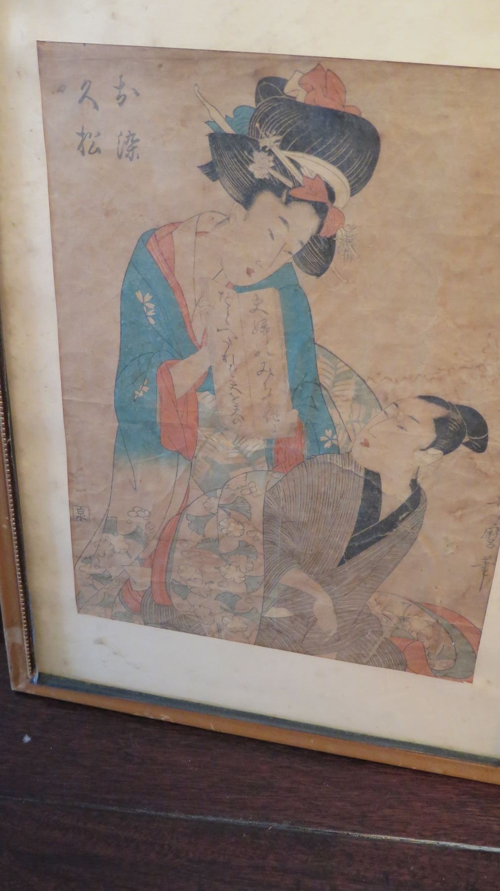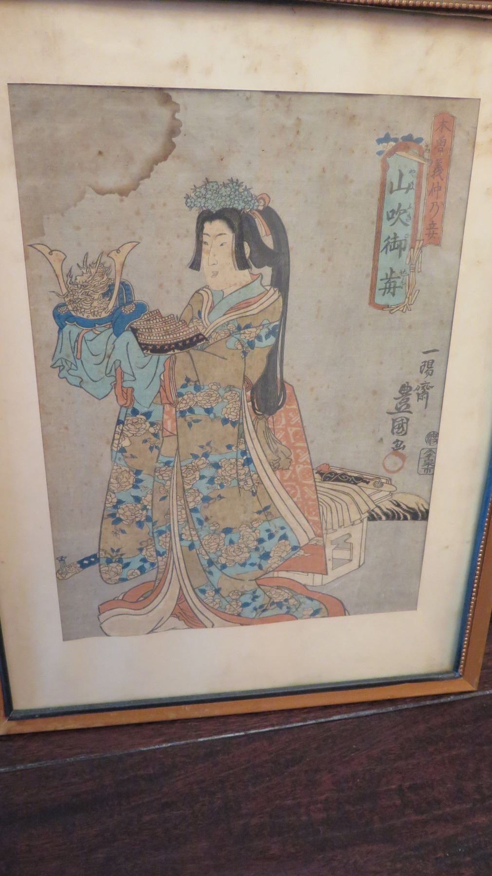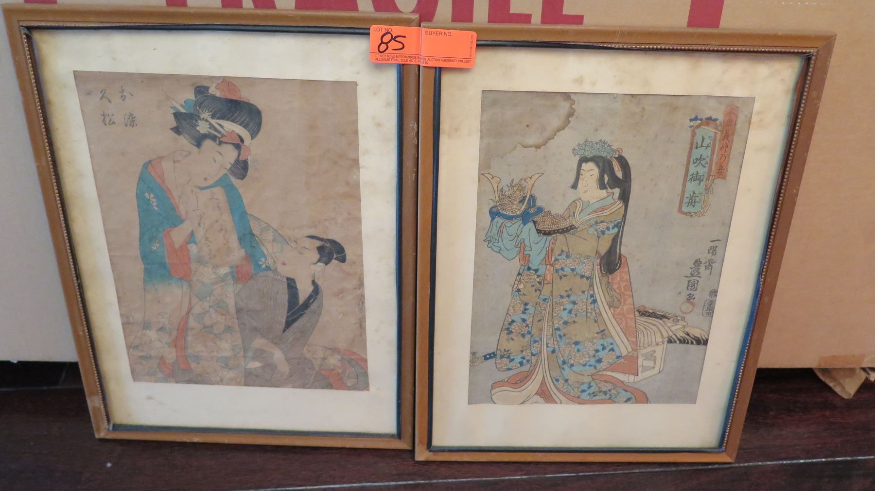 Qty 2 Framed Japanese Wood Block Prints 13" x 17" (some staining and age wear)