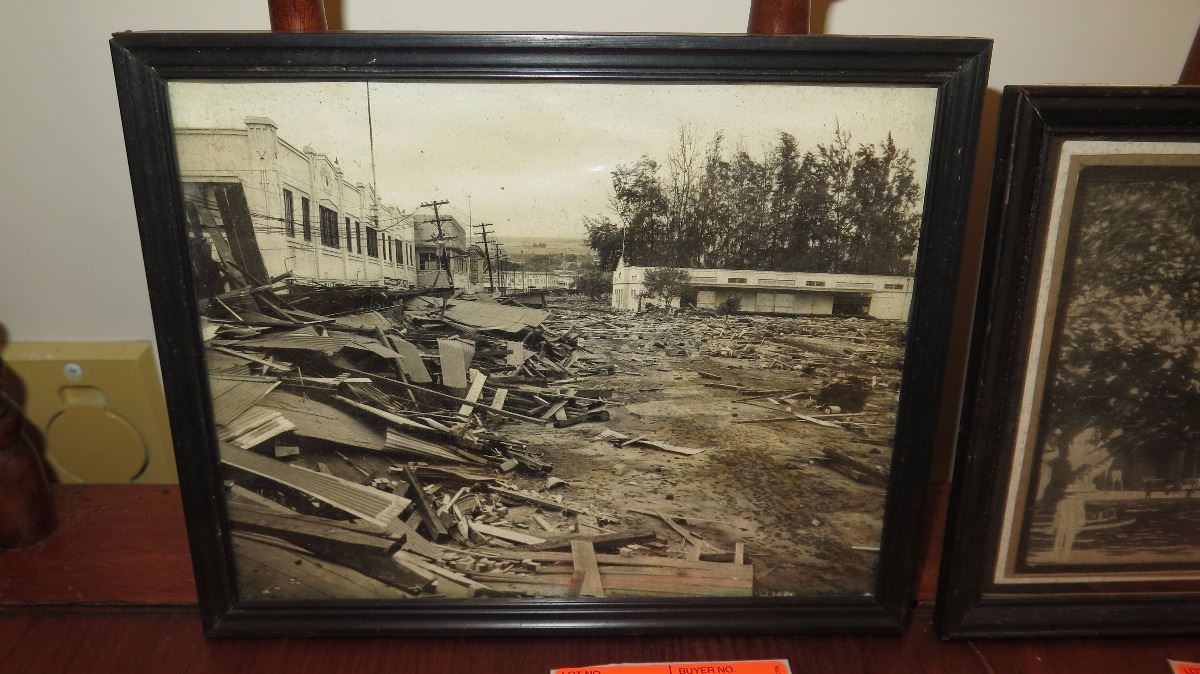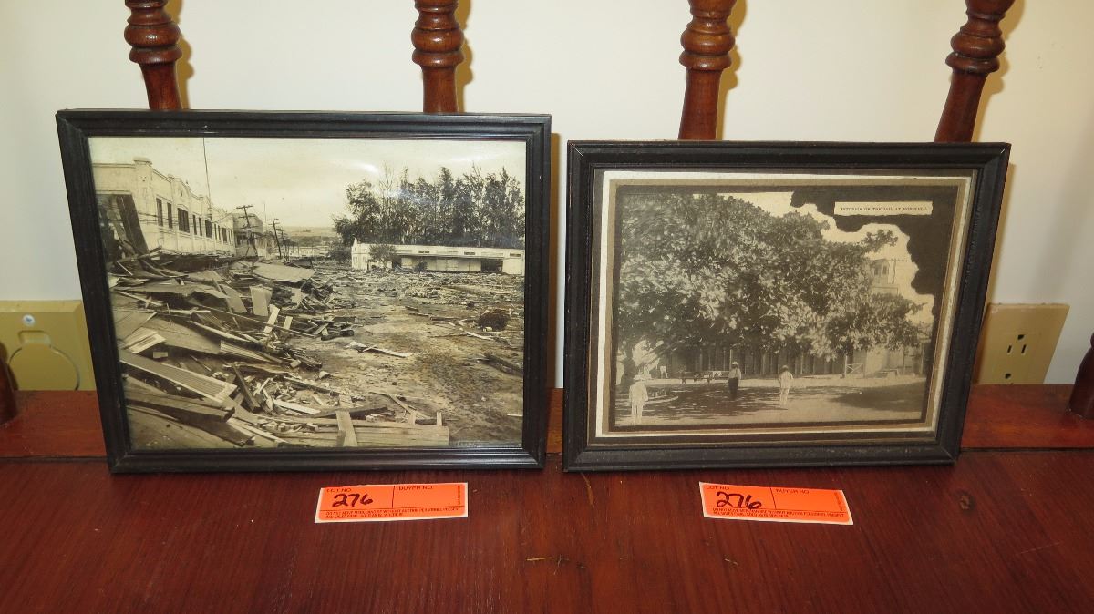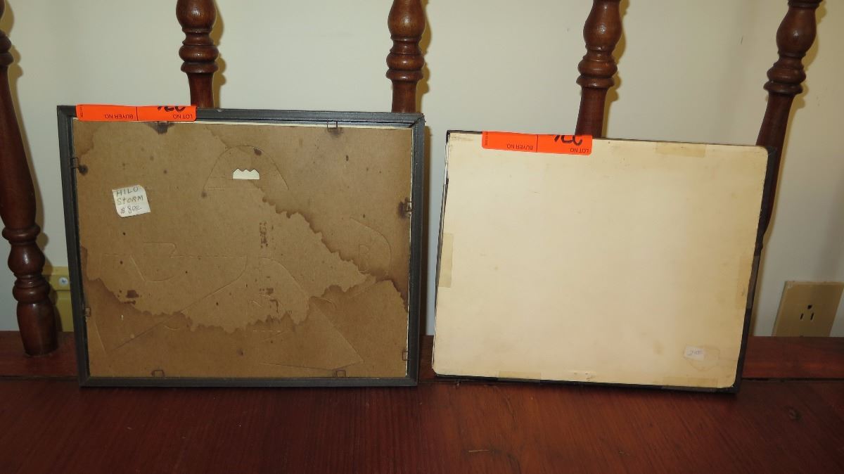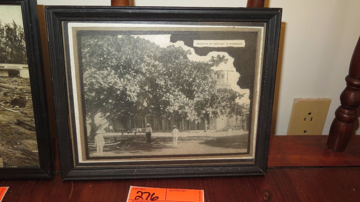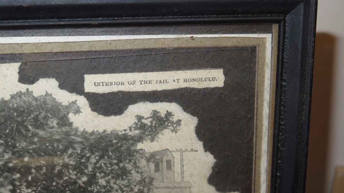 Qty 2 Framed Old B&W Photograph/Sketch - Hilo Storm, Interior of the Jail at Honolulu